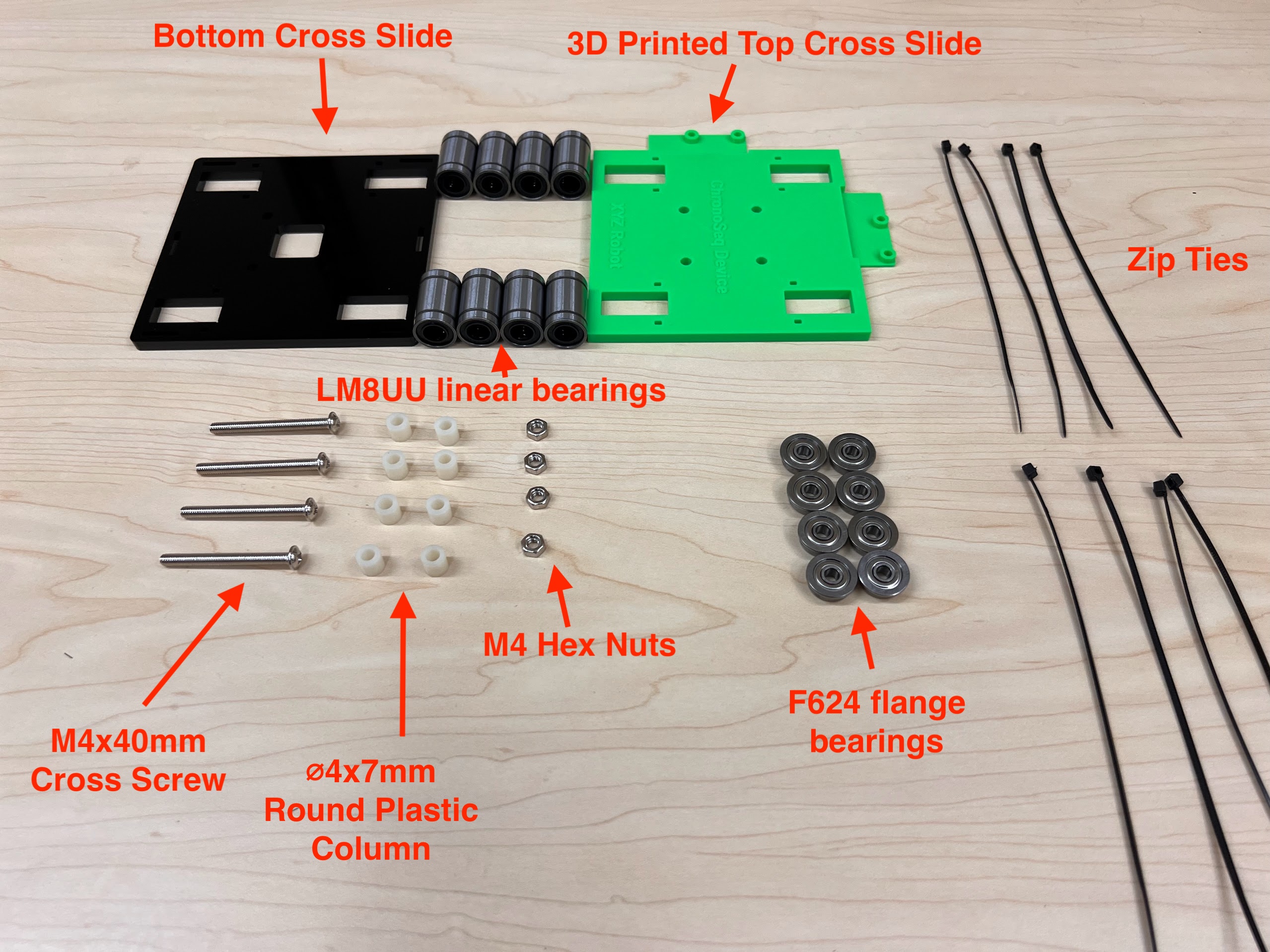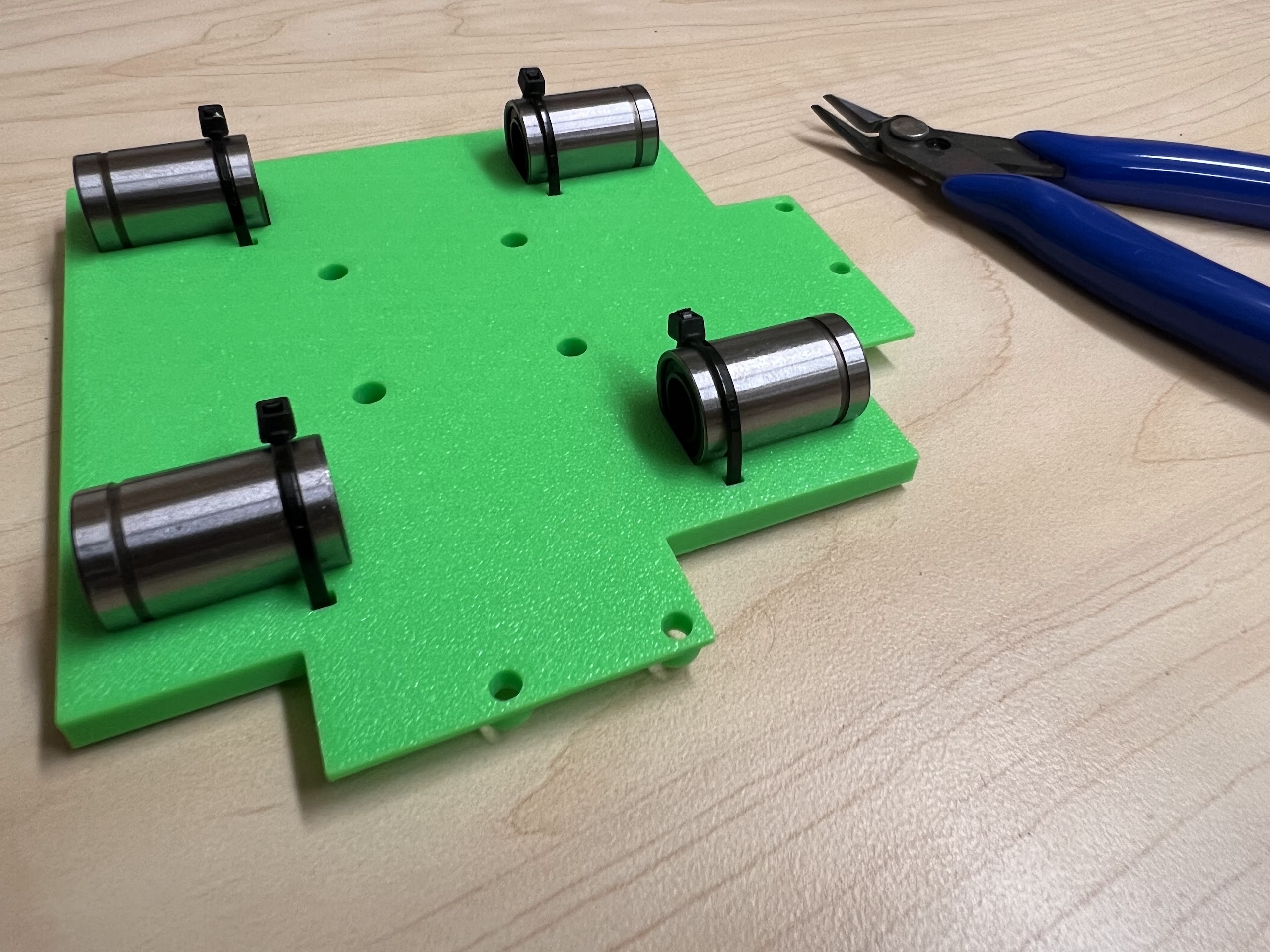 Secure the Linear Bearings using Zip-Ties | 3D Printed Text Should be on the Opposite Side |