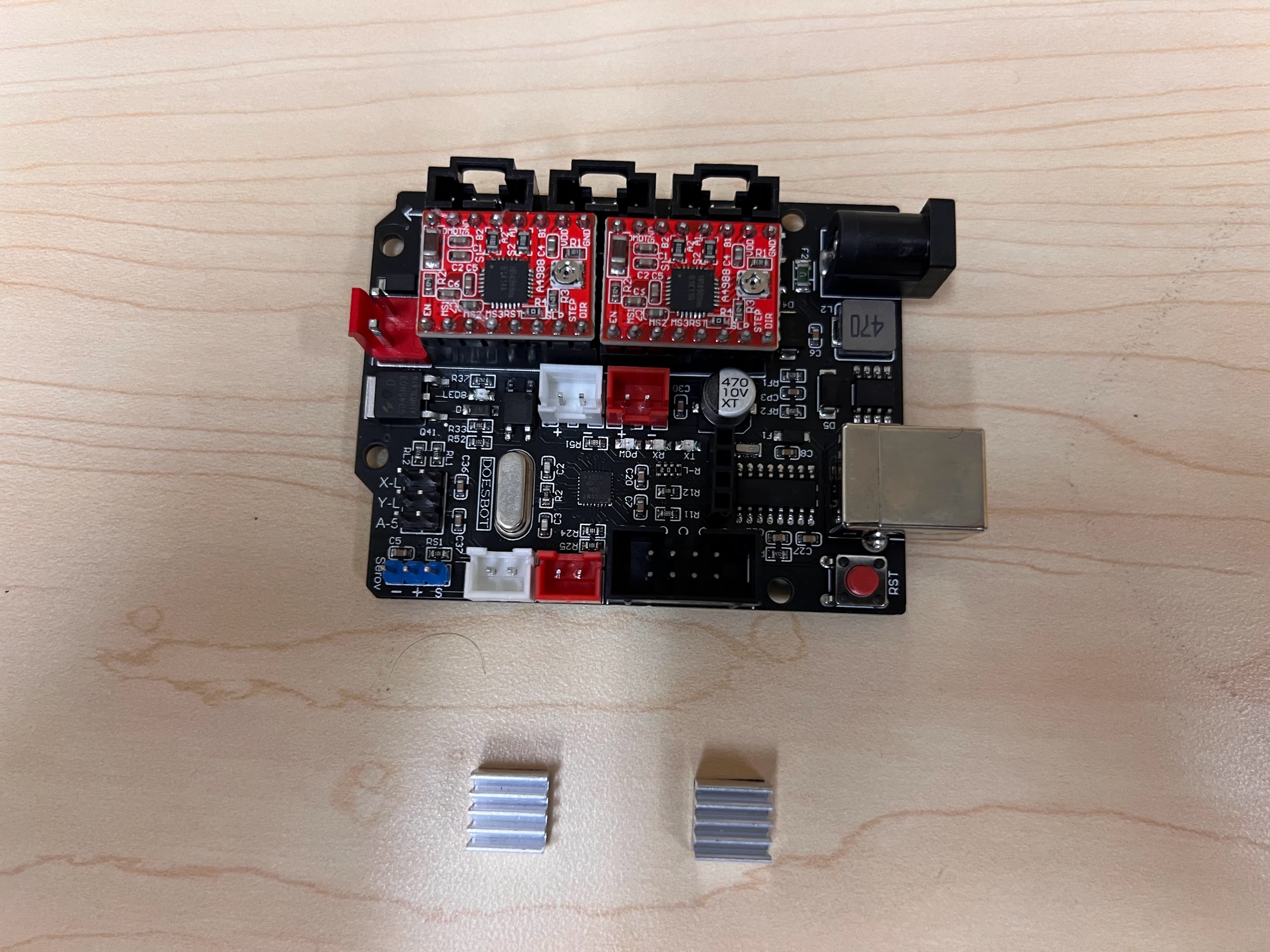 Control Board and Heatsinks | Heatsinks attached to the Stepper Motor Driver ICs on the Control Board |