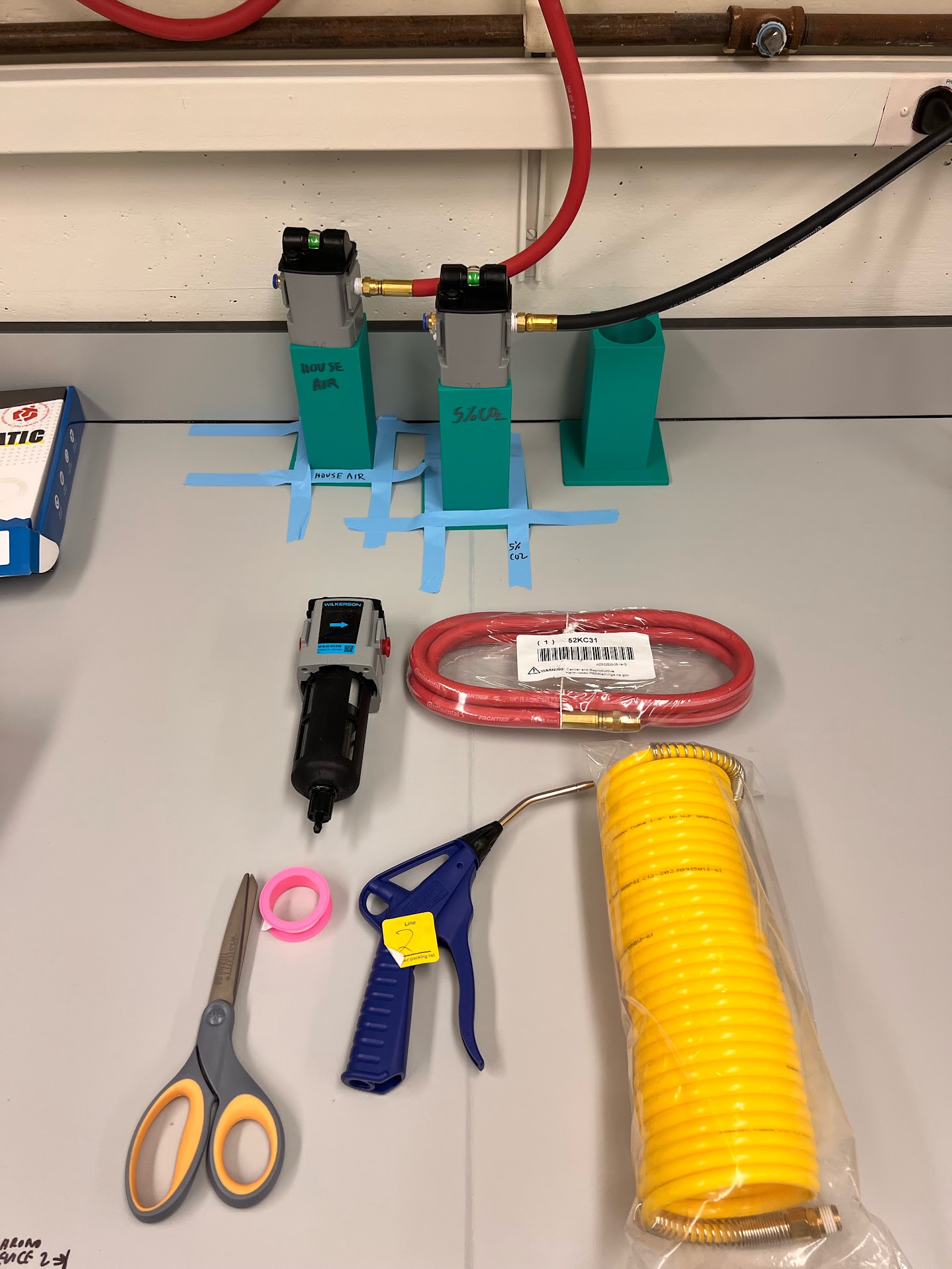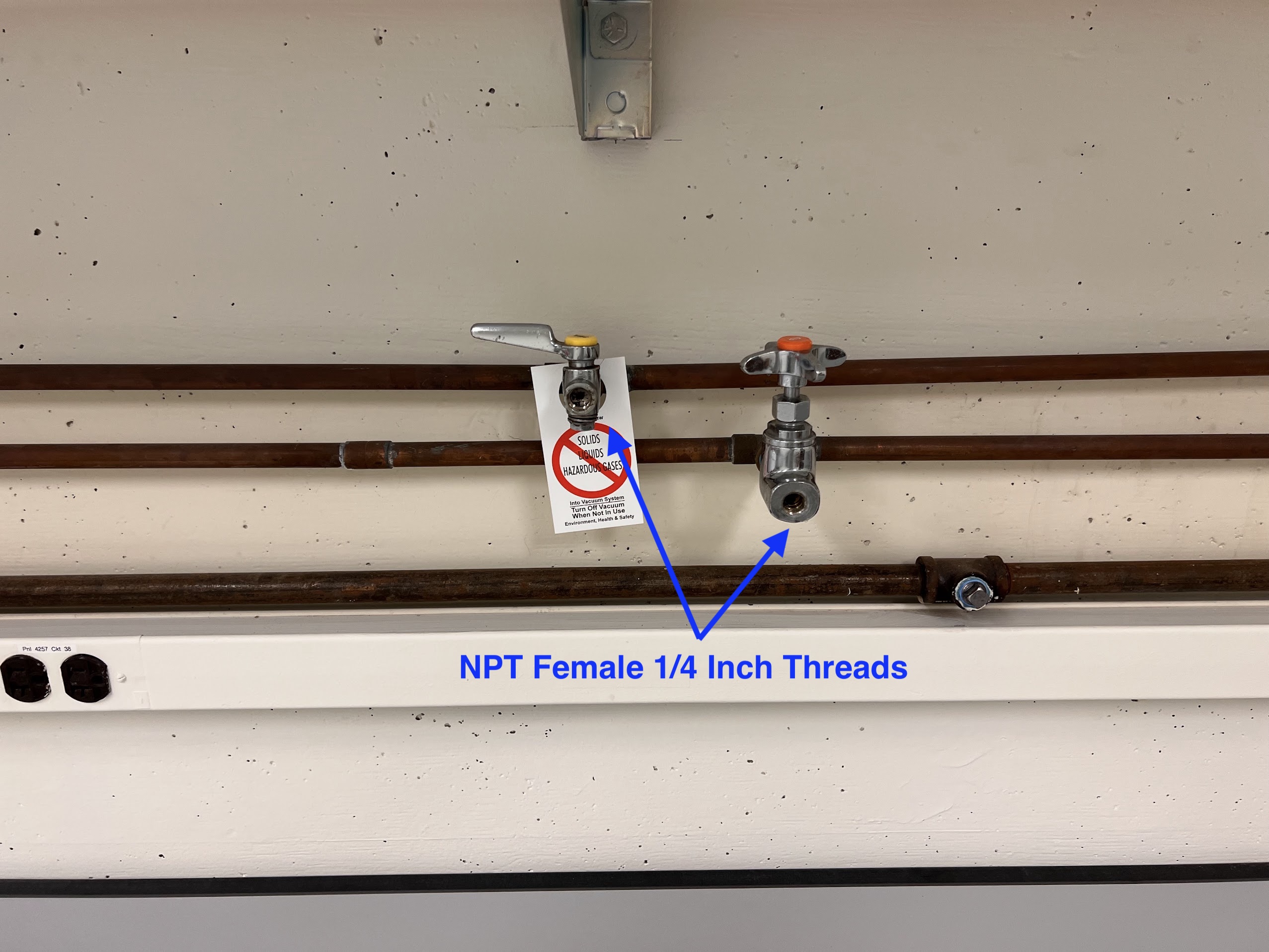 The barbs for the House Air and Vacuum sources were also removed. The input threads for sources in our building were Female NPT 1/4 Inch.