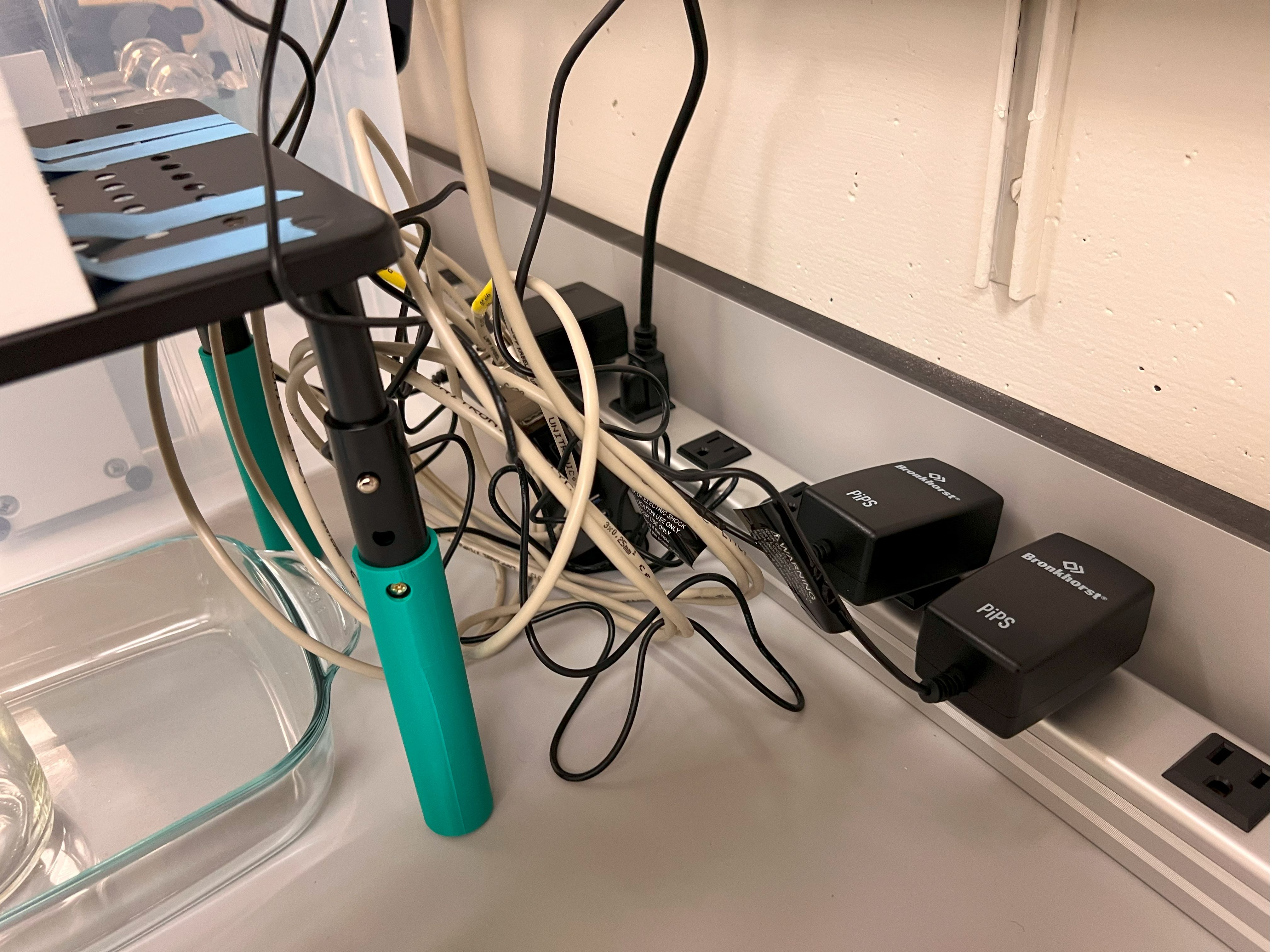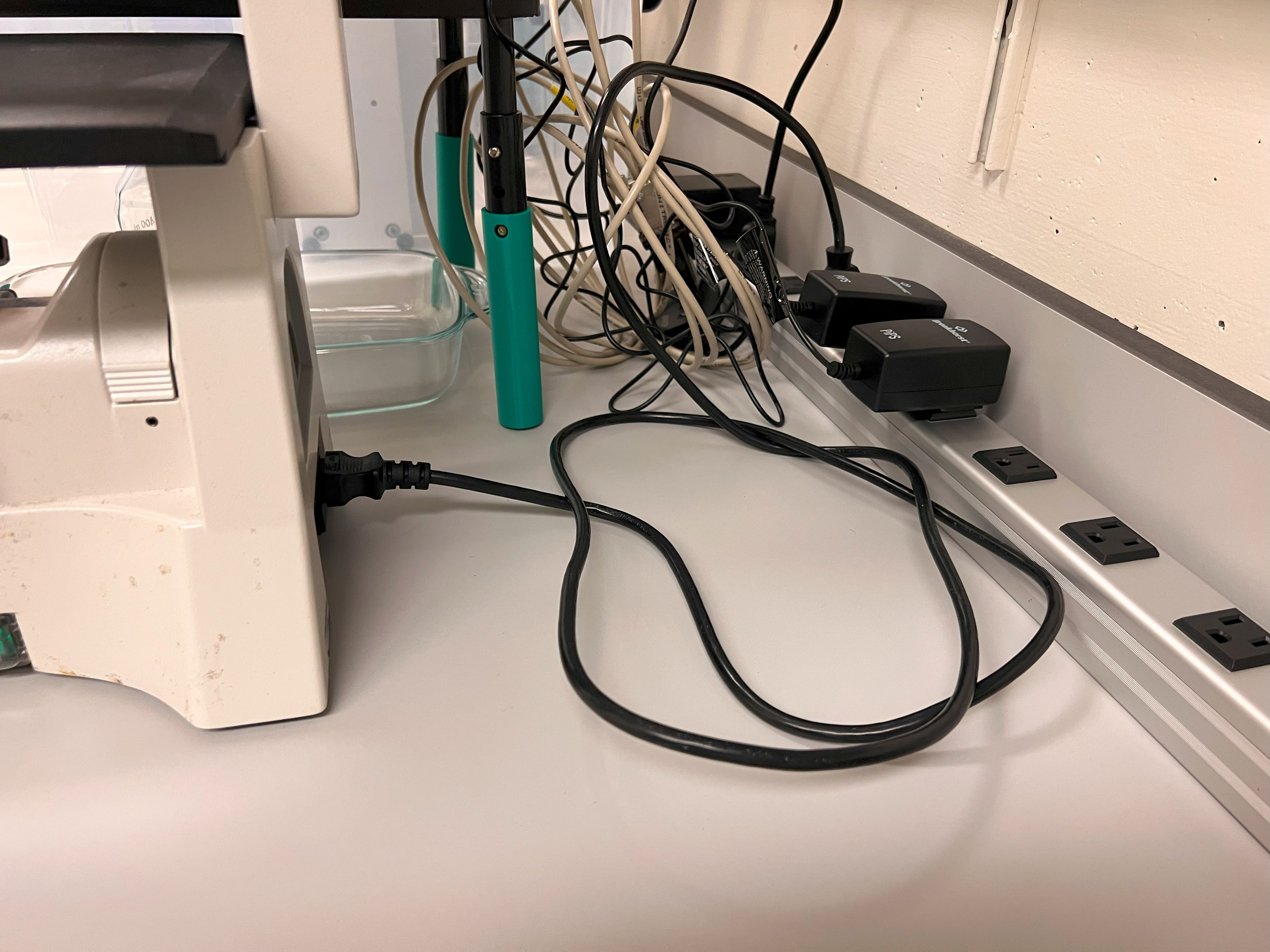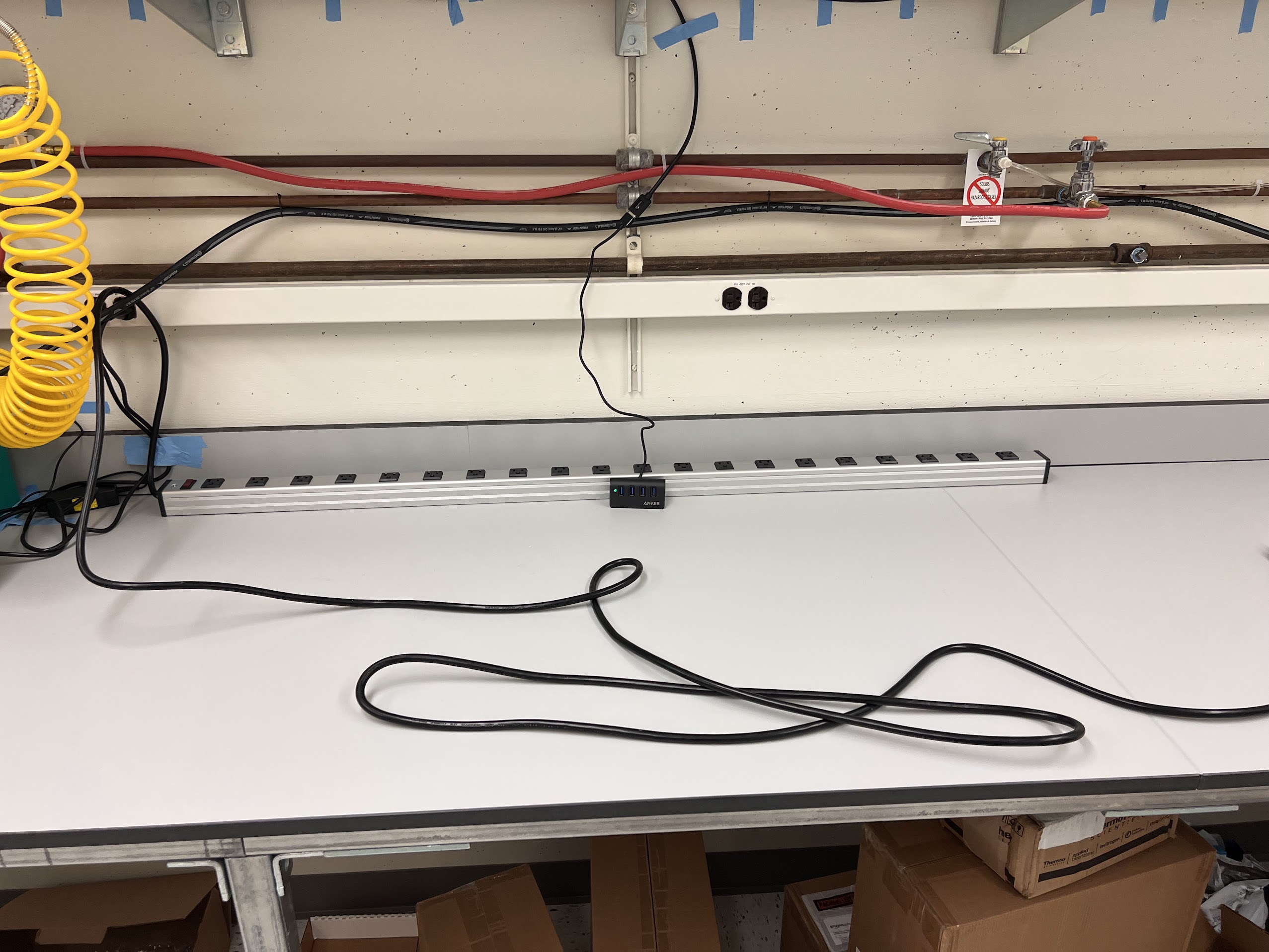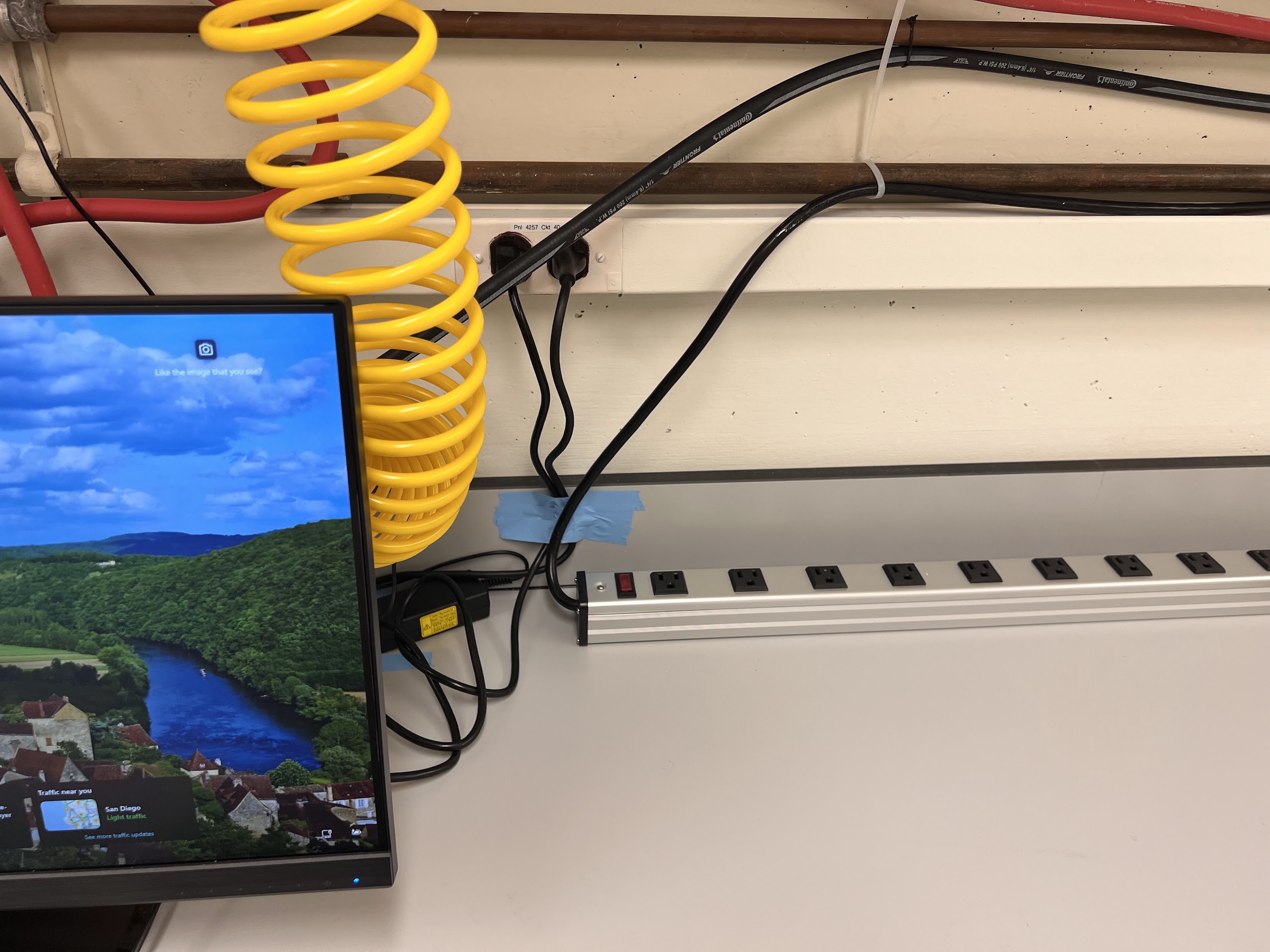 Put the power strip at the back of your bench | The On/Off switch should be close to the right side of the monitor for easy access |