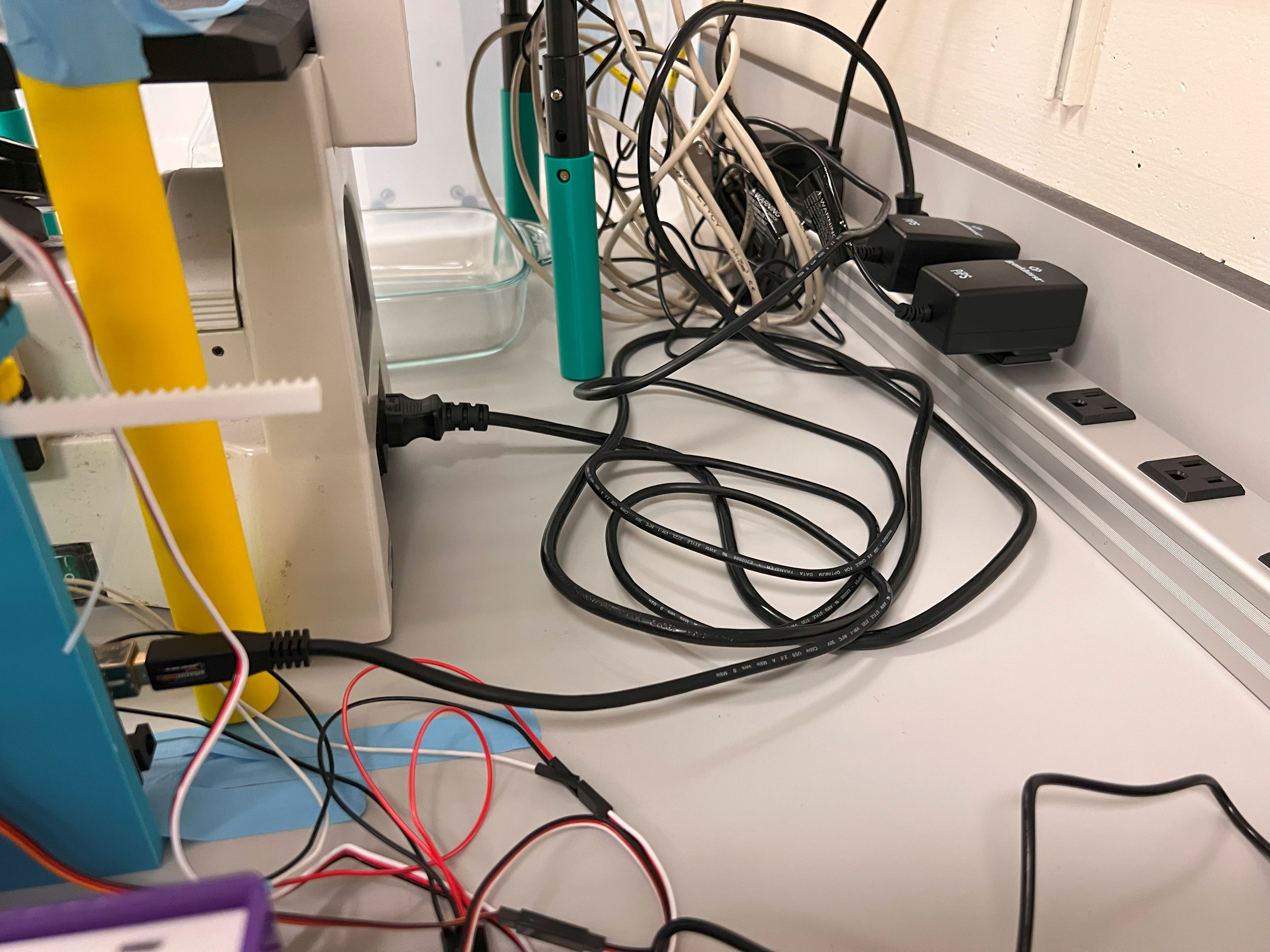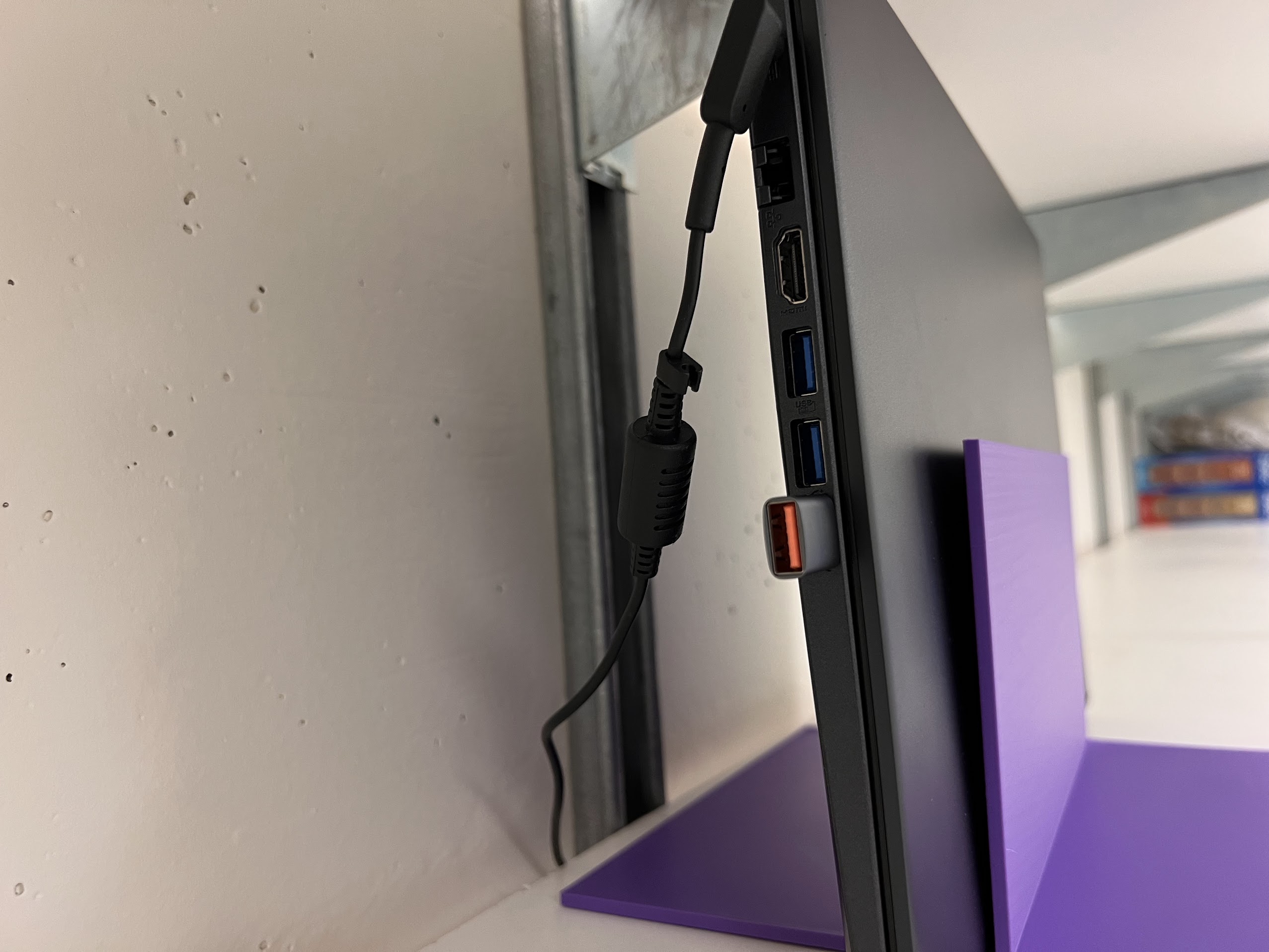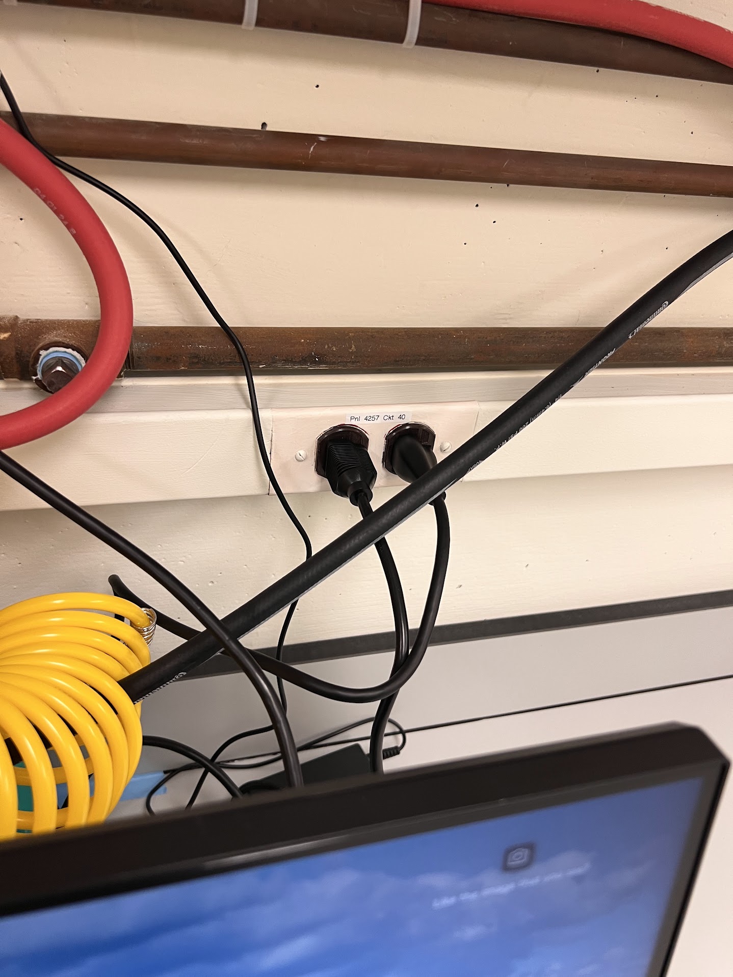 Put the power strip at the back of your bench | The On/Off switch should be close to the right side of the monitor for easy access |
