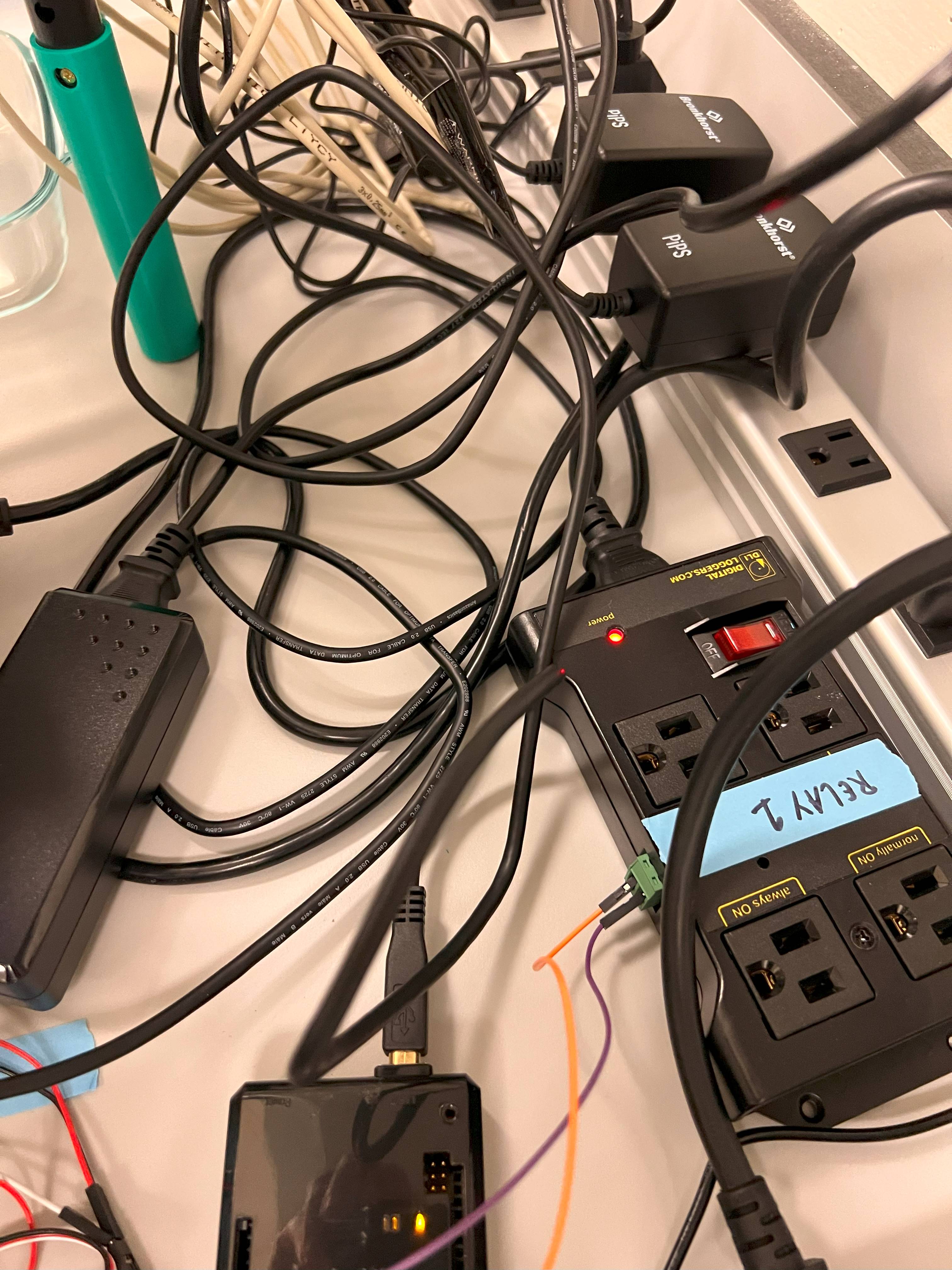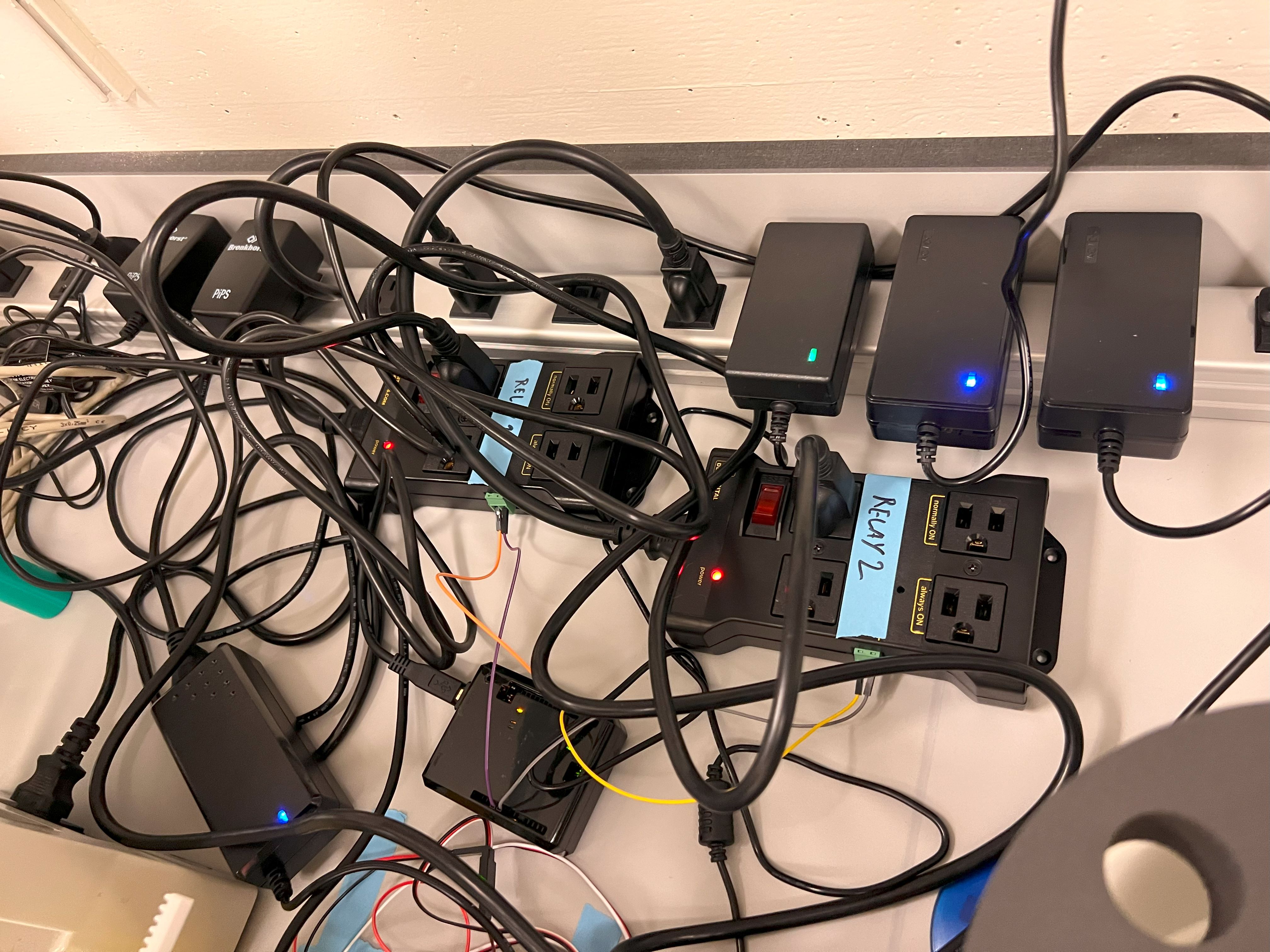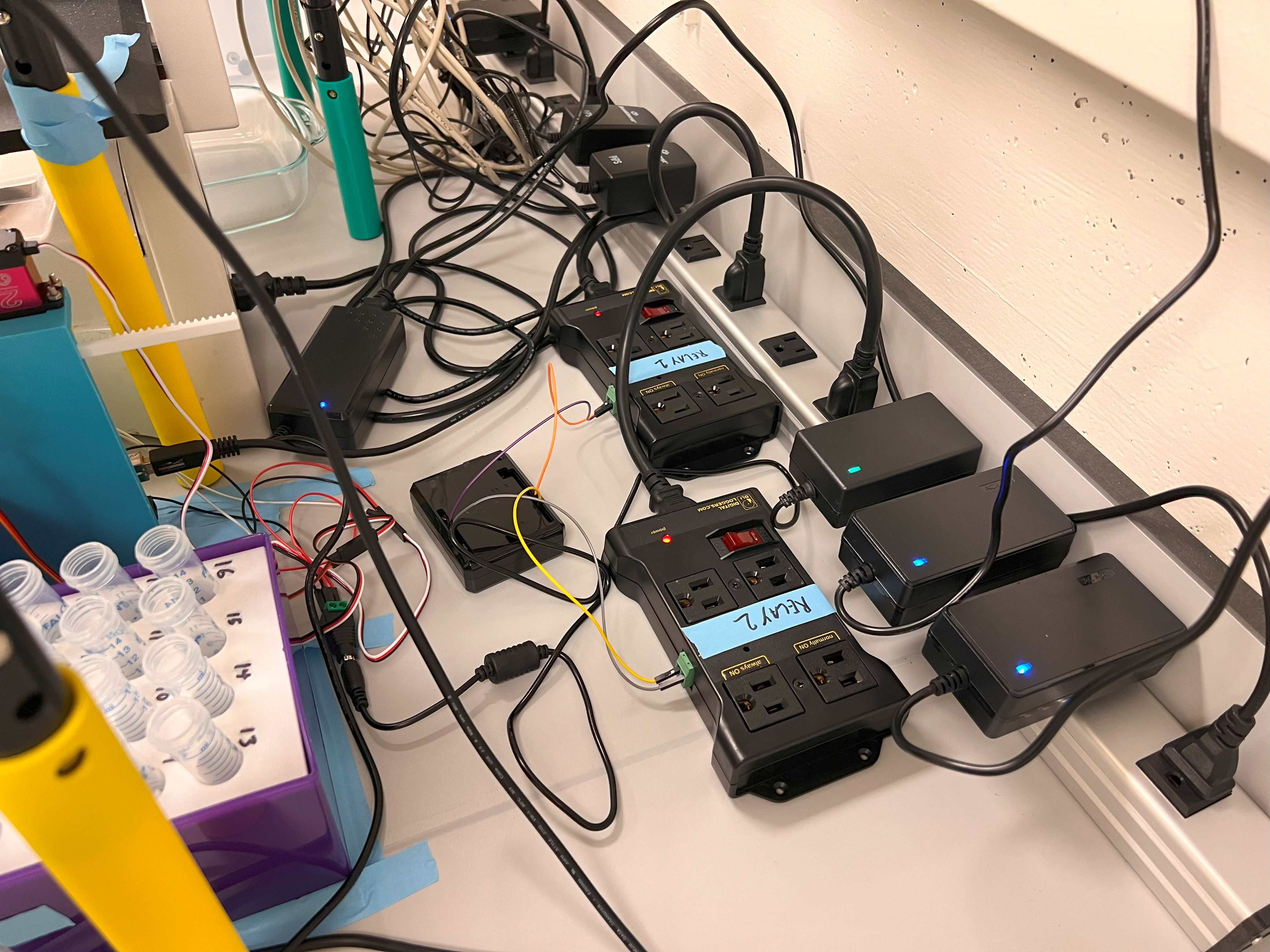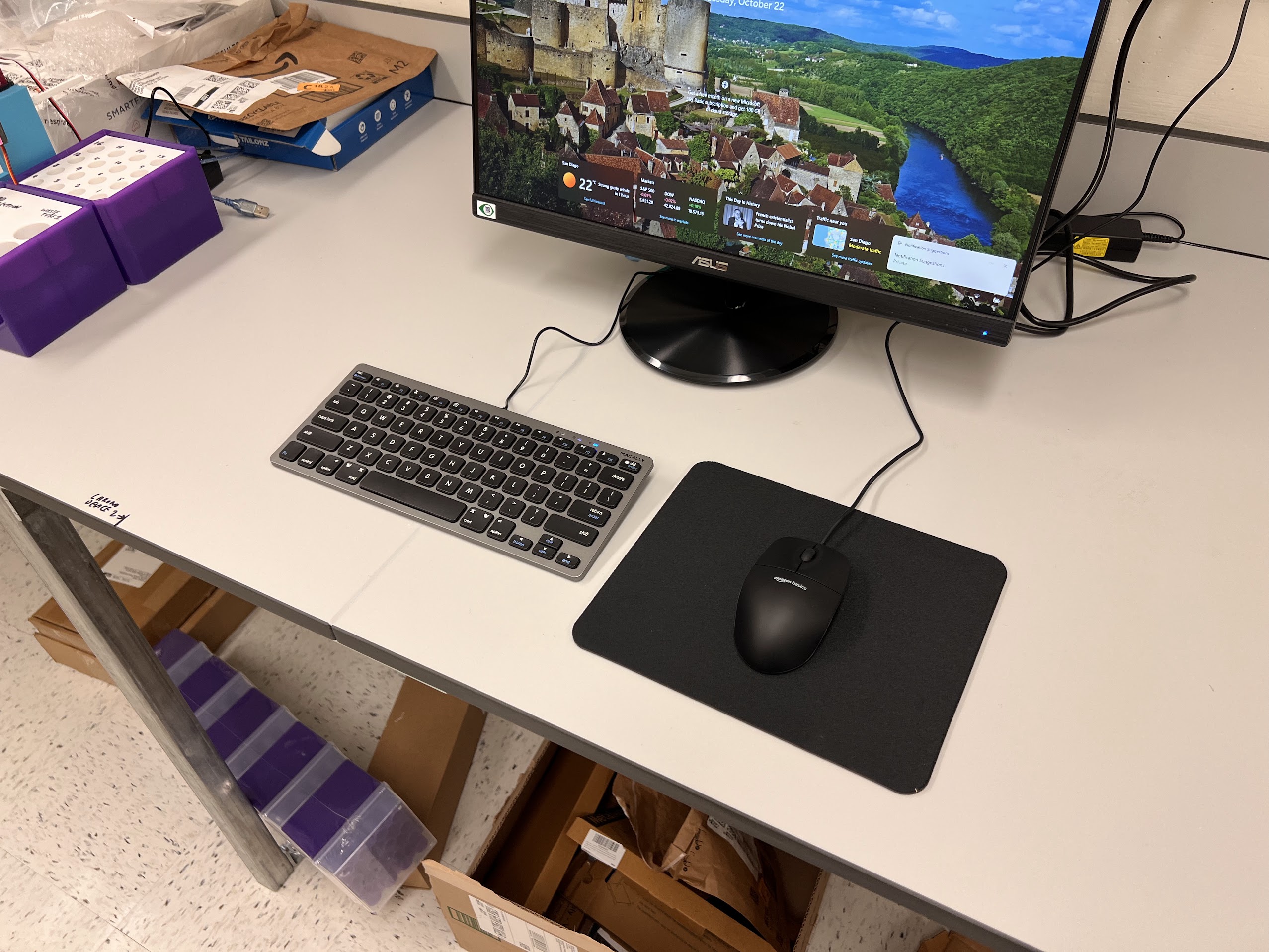 Put the power strip at the back of your bench | The On/Off switch should be close to the right side of the monitor for easy access |