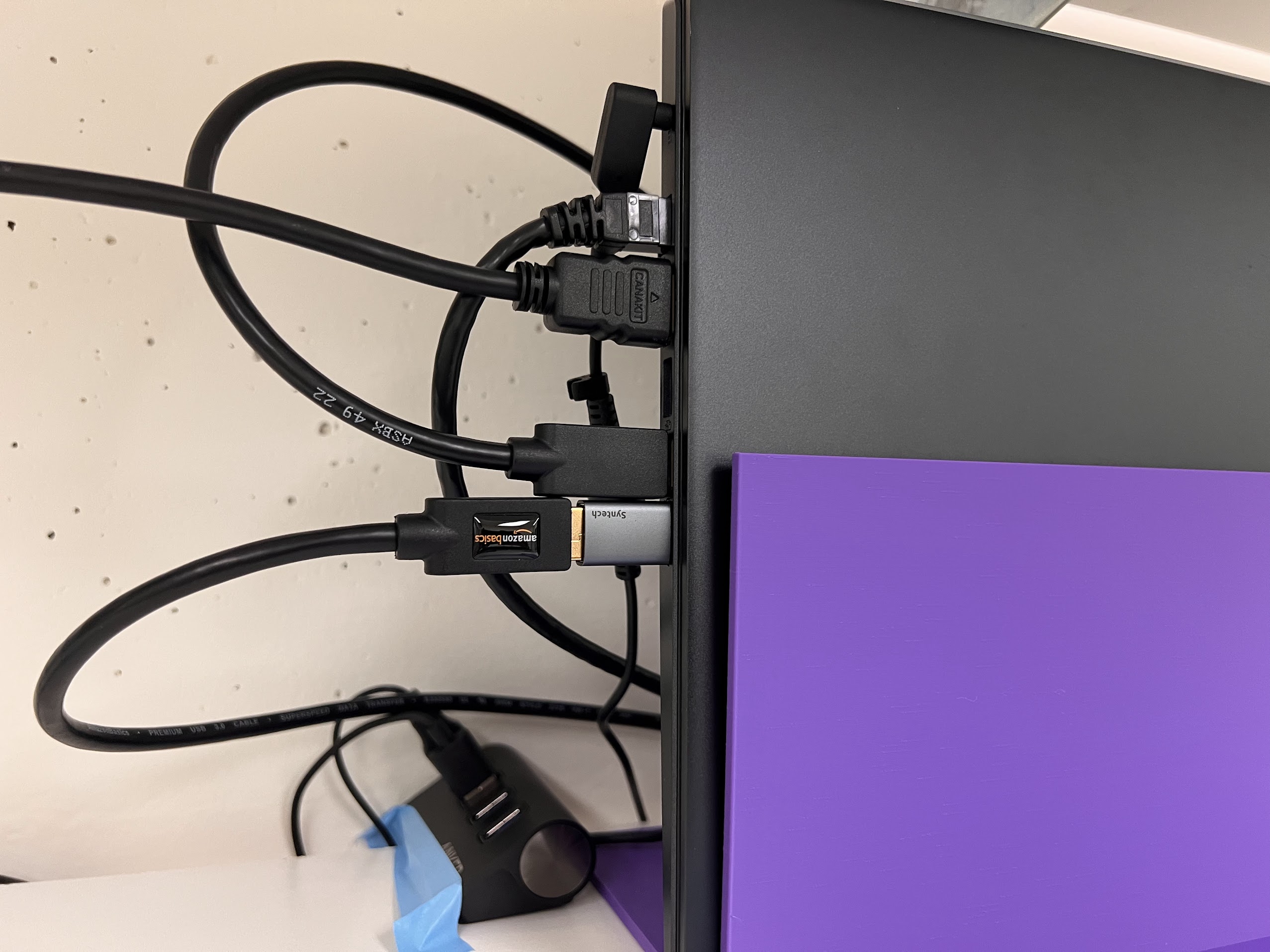 HDMI Cable | Routed along the back | Plugged into nearest electrical Outlet |