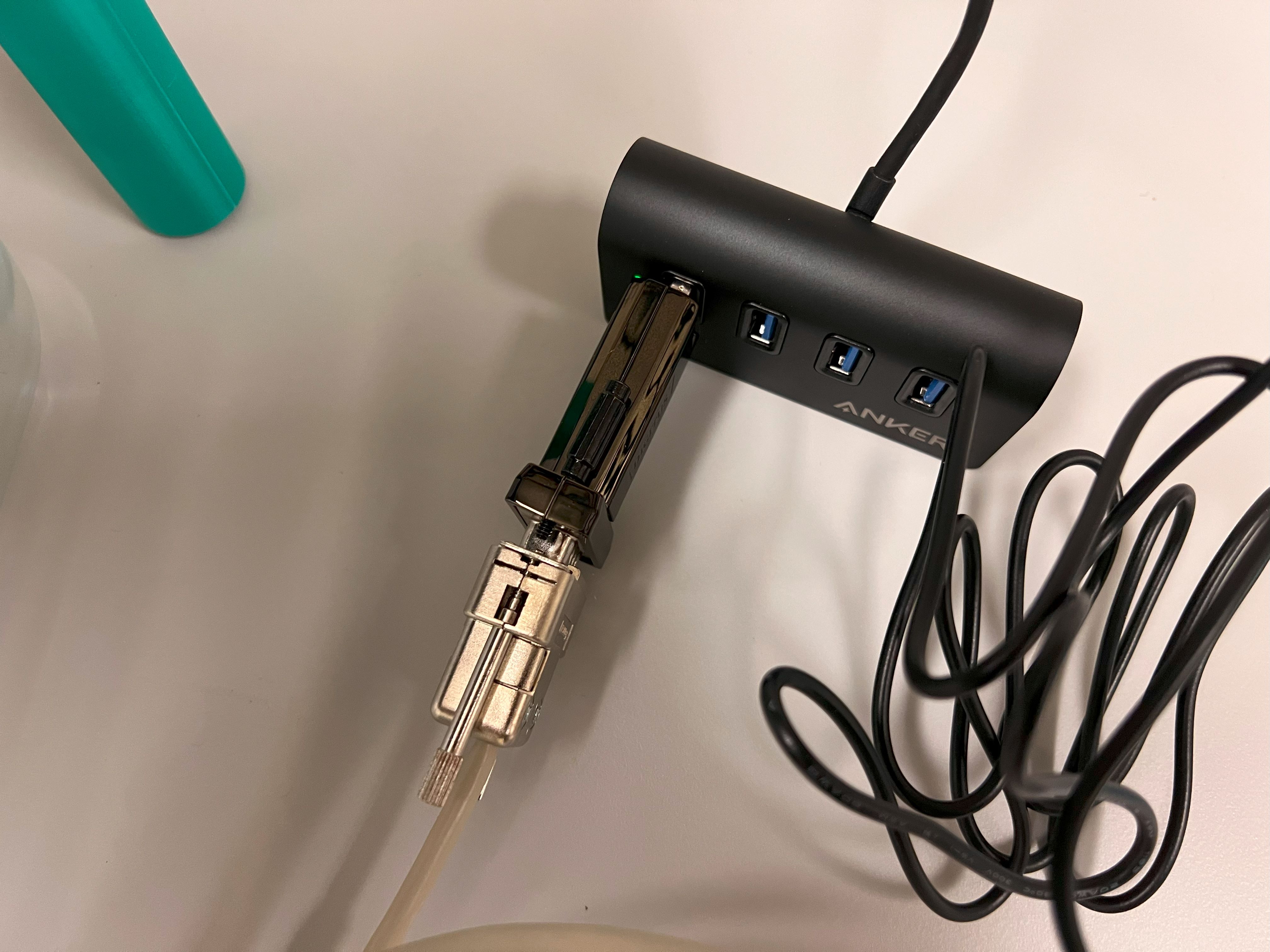 to get the Hardware(MAC) address for your Ethernet.Place the Hub at back in middle of ChronoSeq device area | Connect to the USB 3 Type C Port as shown | Secure the Extension cable in place using Labelling Tape |
