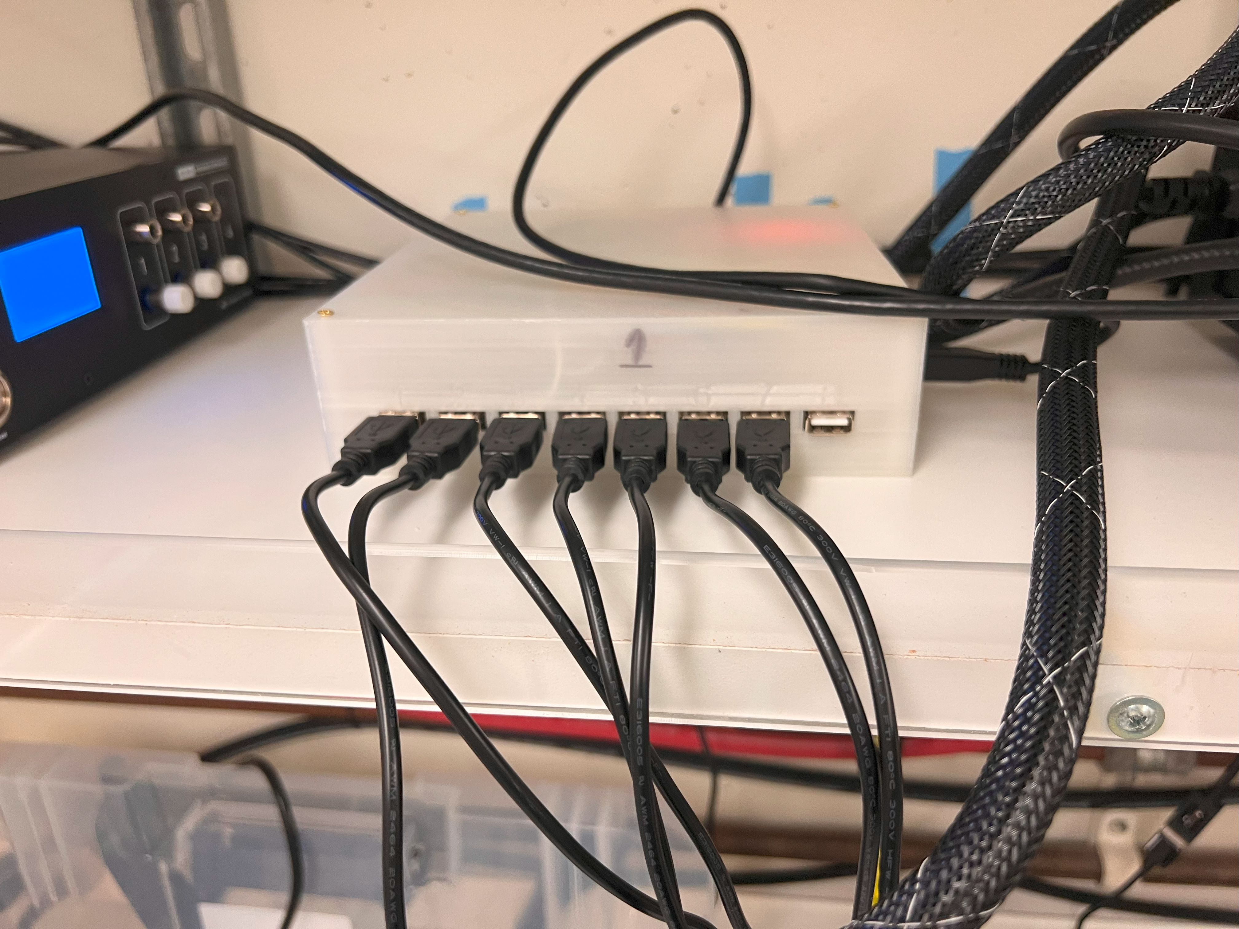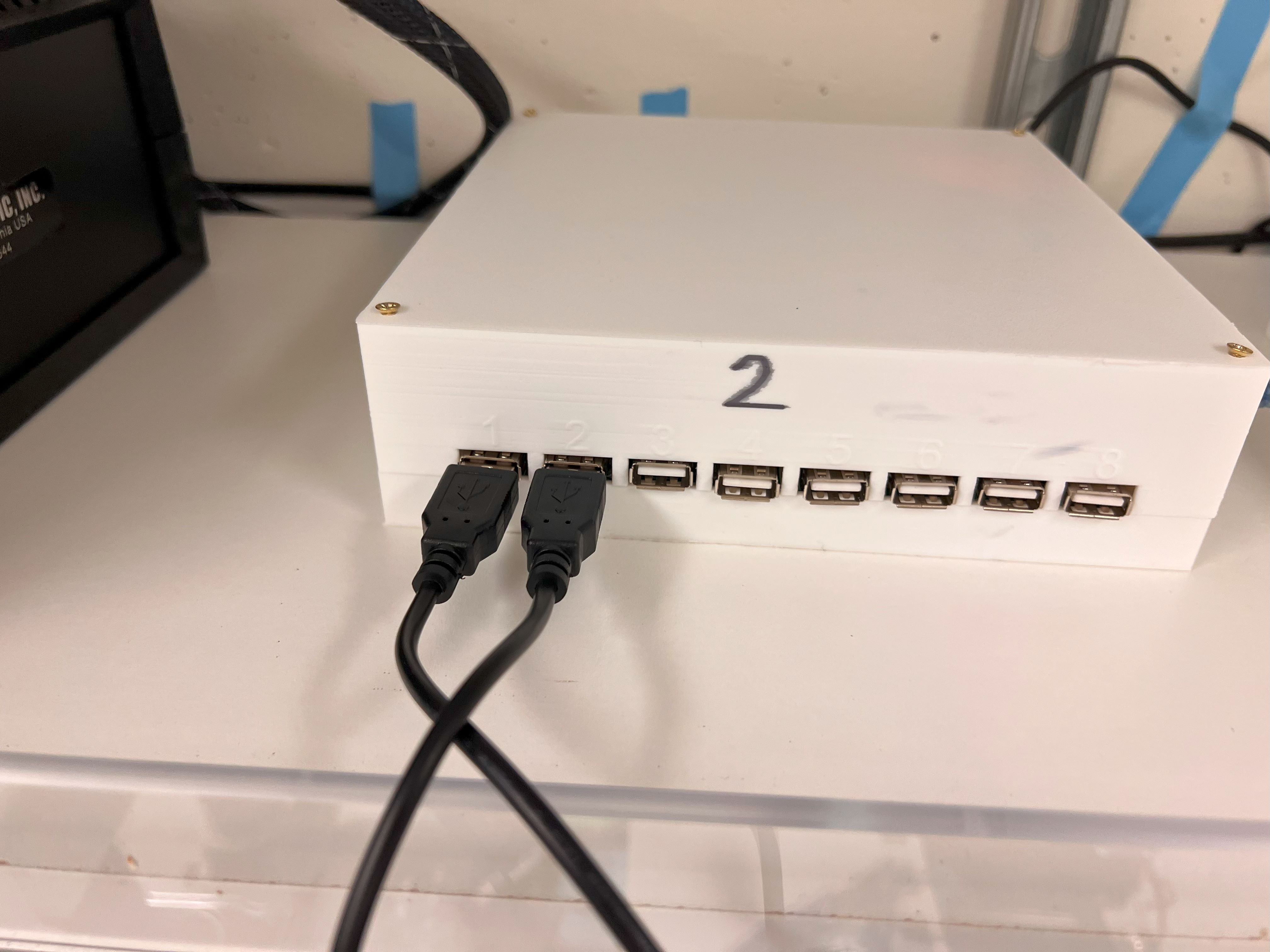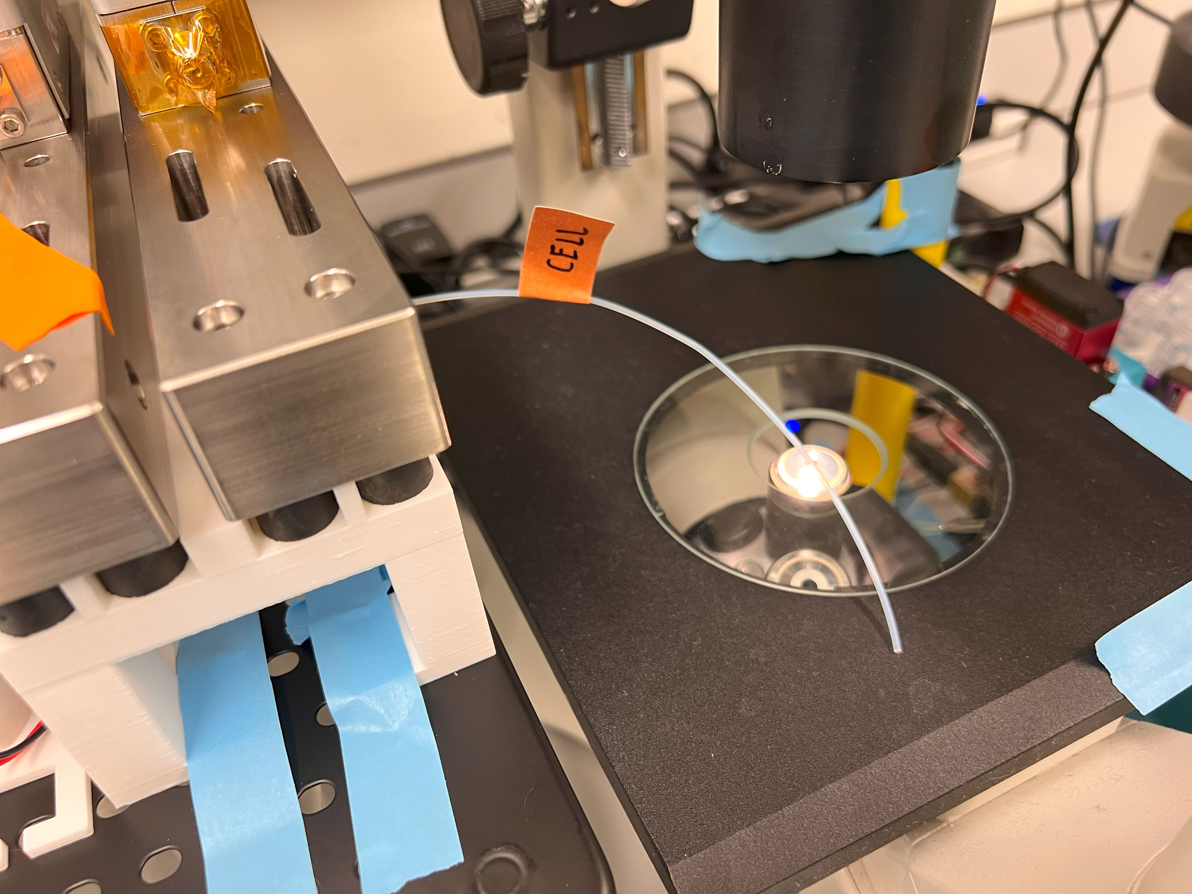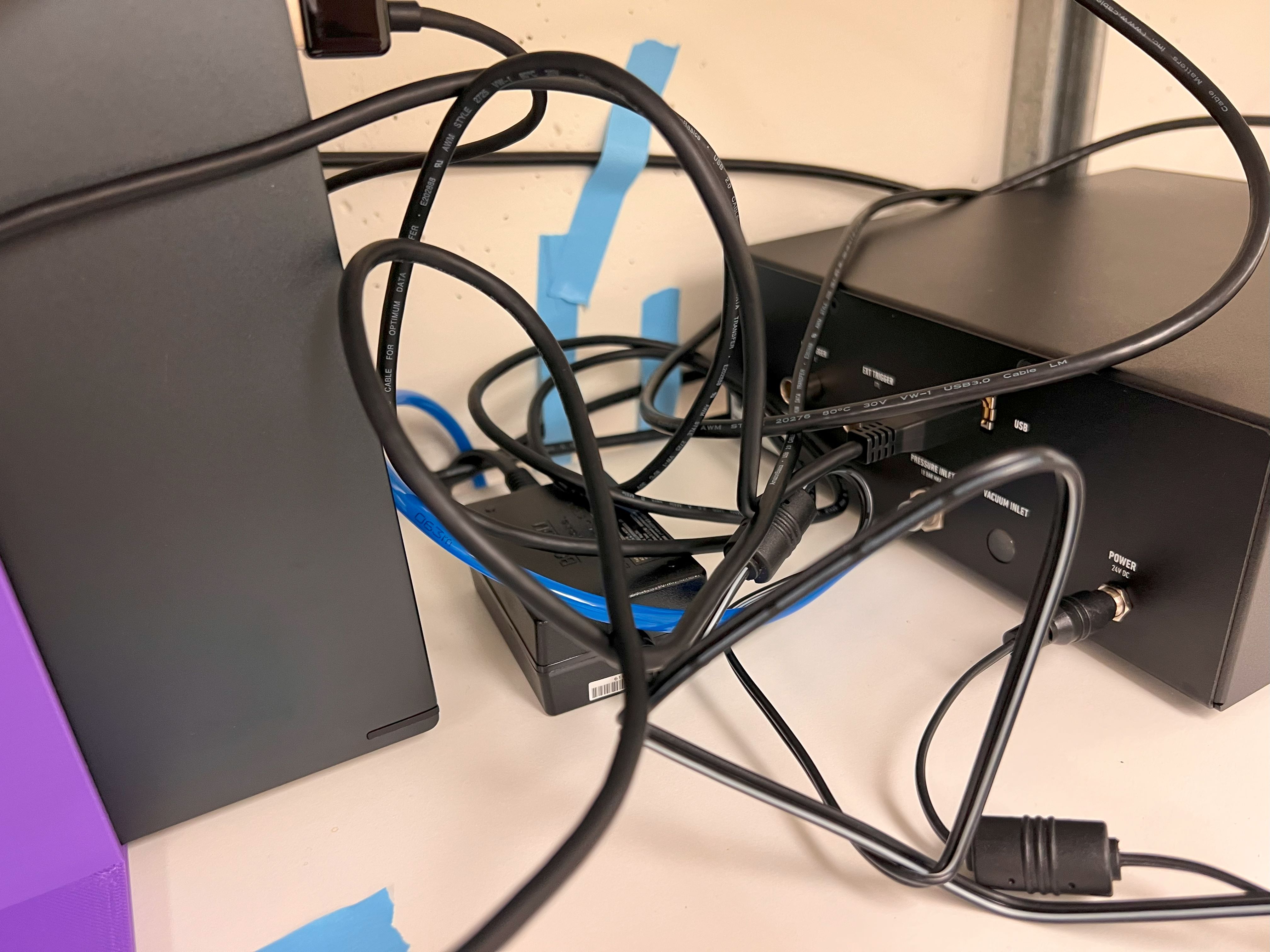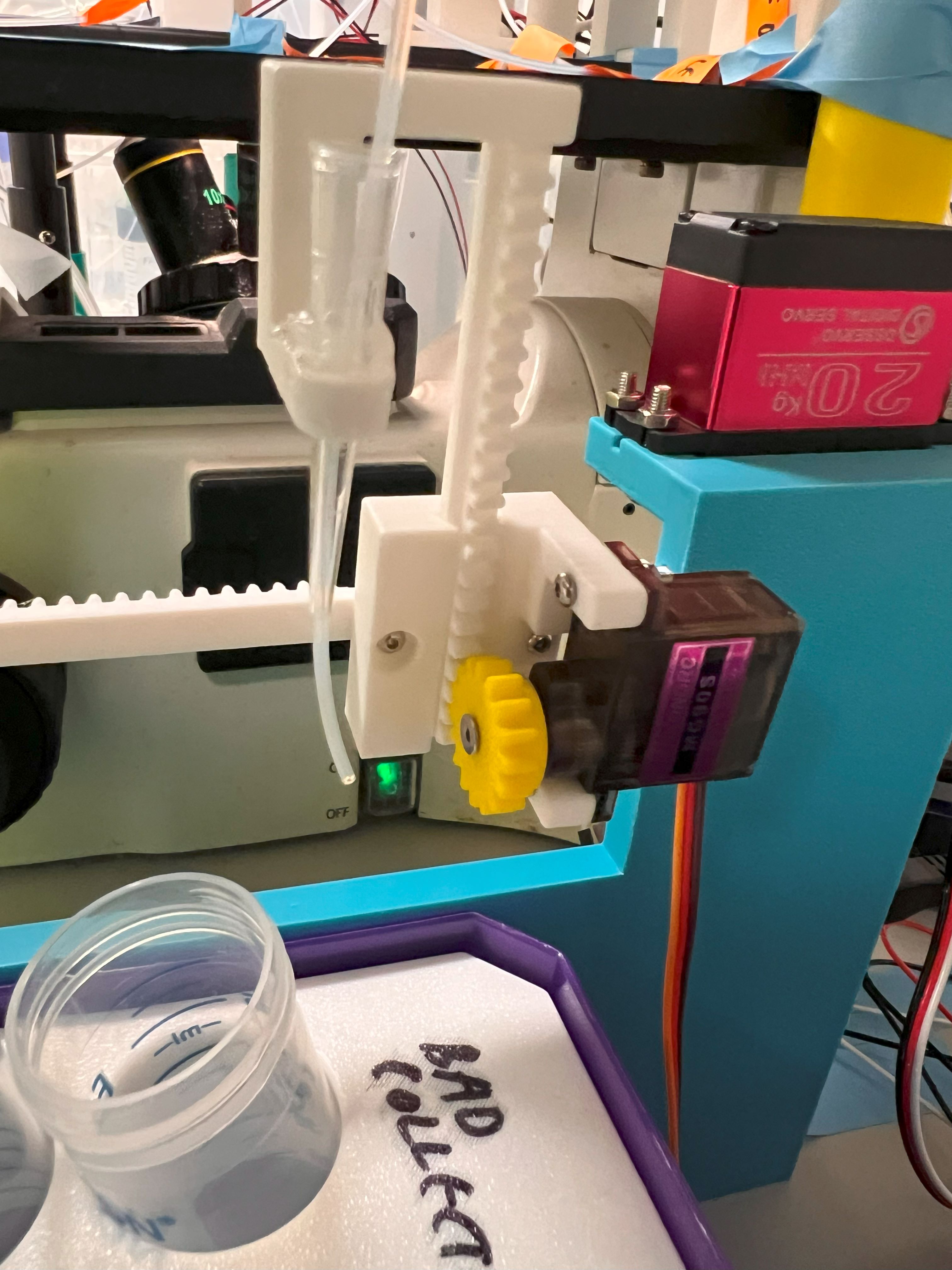 Attach to Linear Rail on XY Robot. Leave enough slack. | Tape to Microscope stage. |