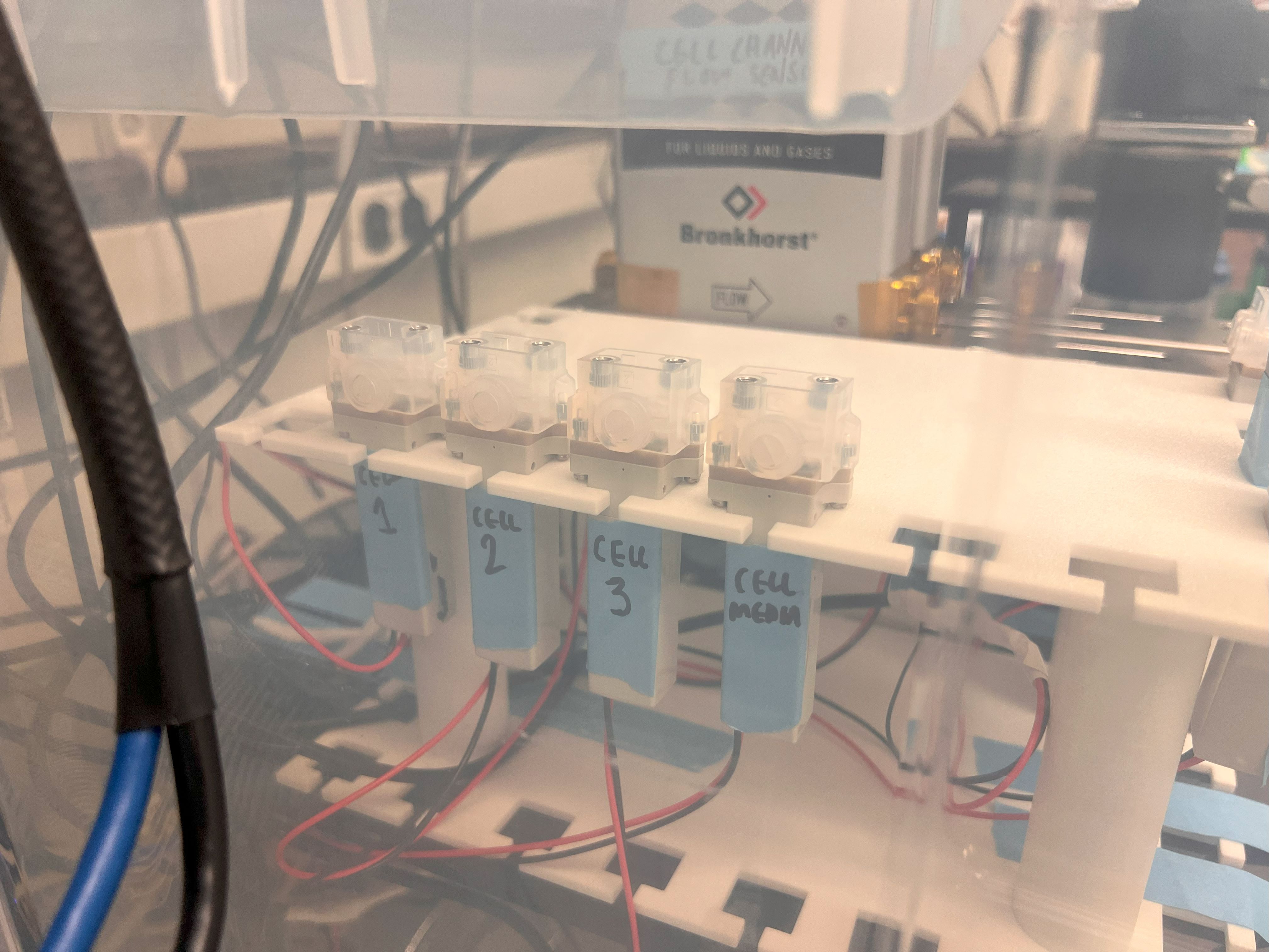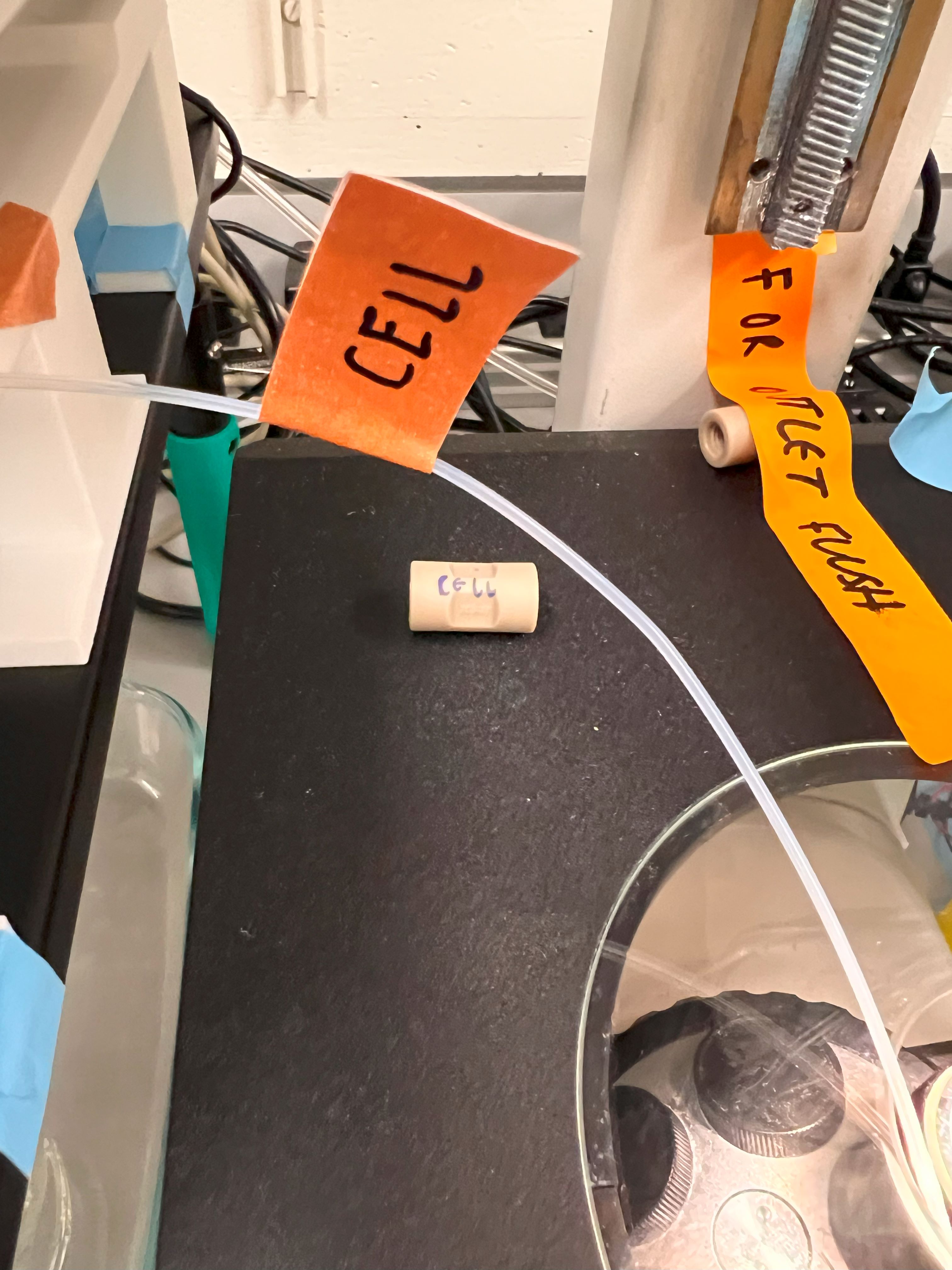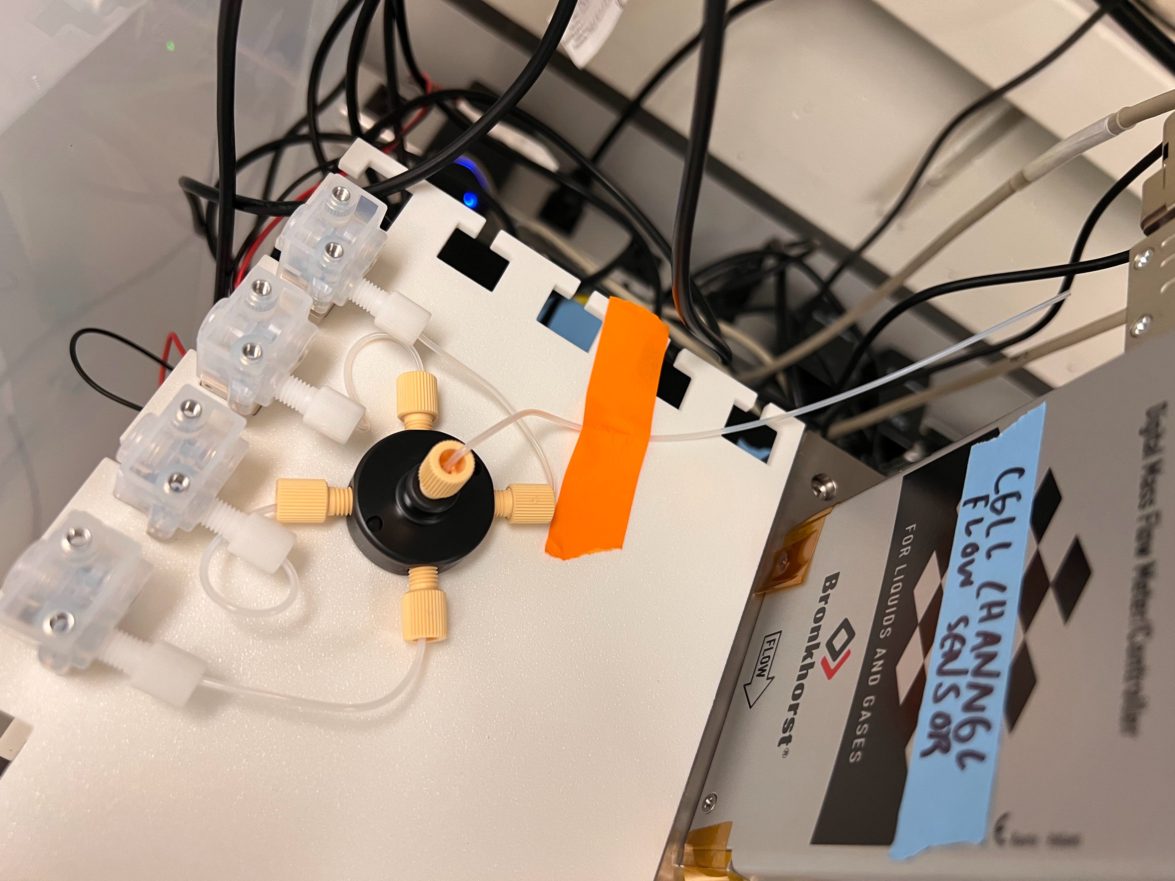 Route from Behind | Tape under the Cell and Bead Channel Flow Sensors | Label: Cell |