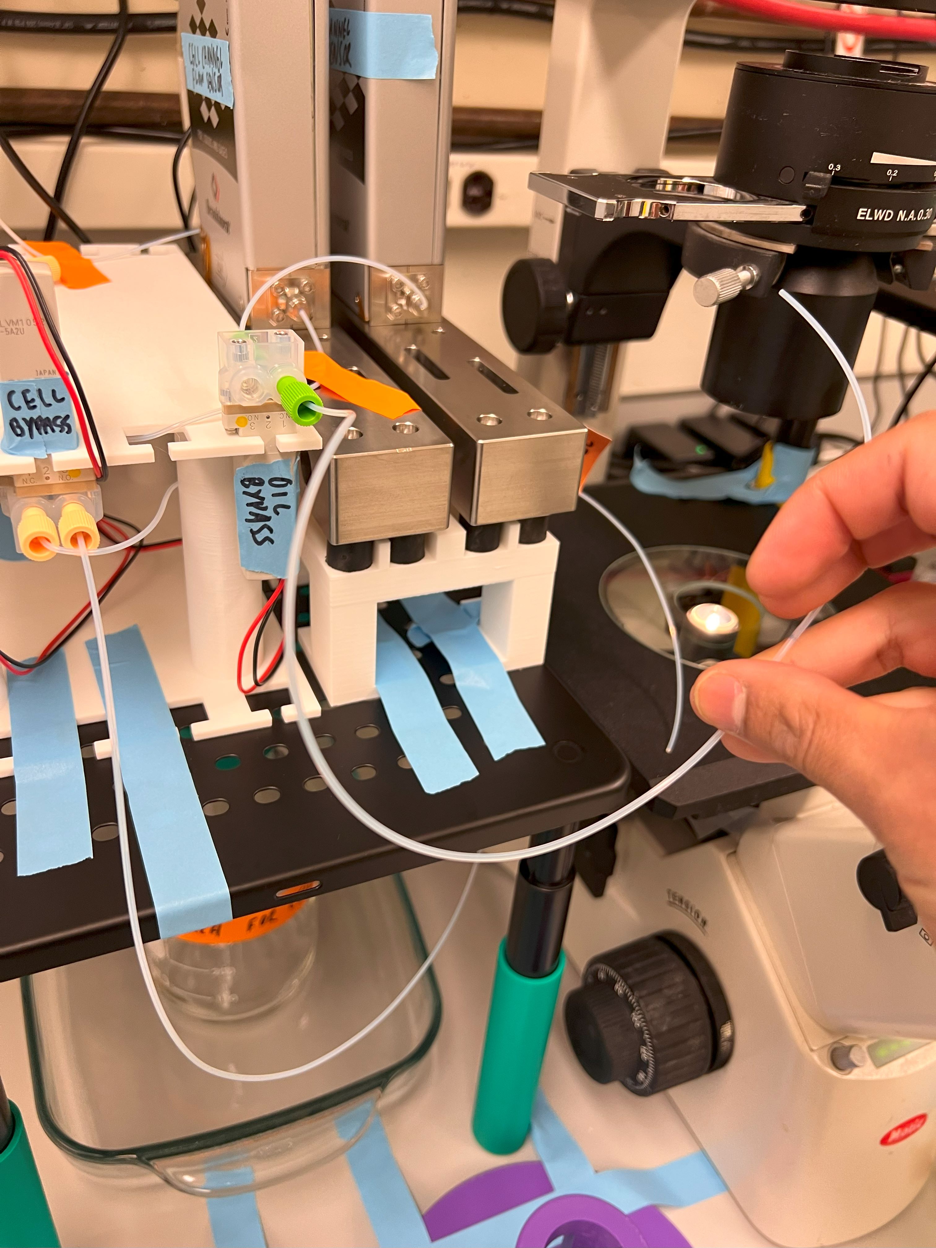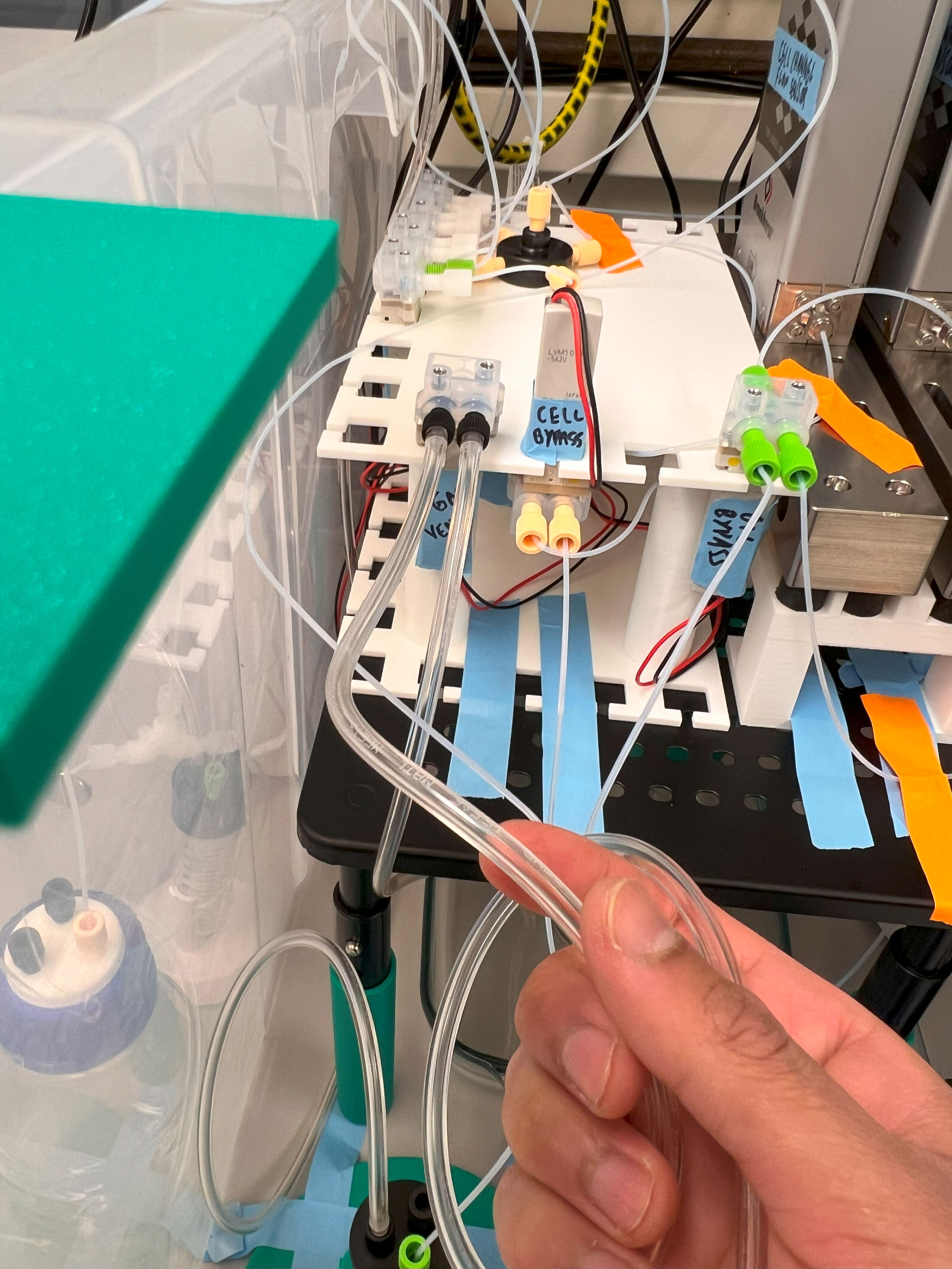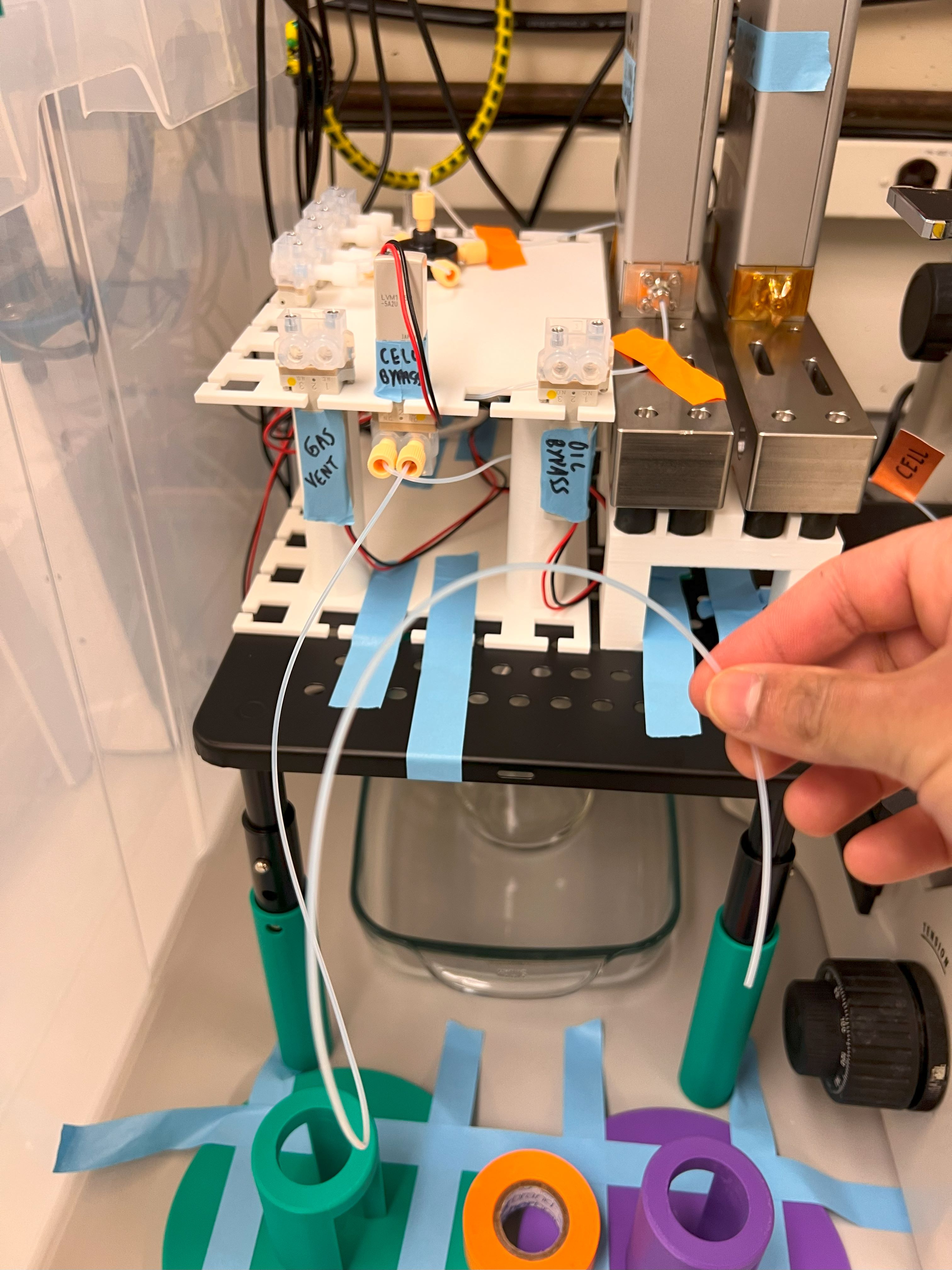 Route from Behind | Tape under the Cell and Bead Channel Flow Sensors | Label: Cell |