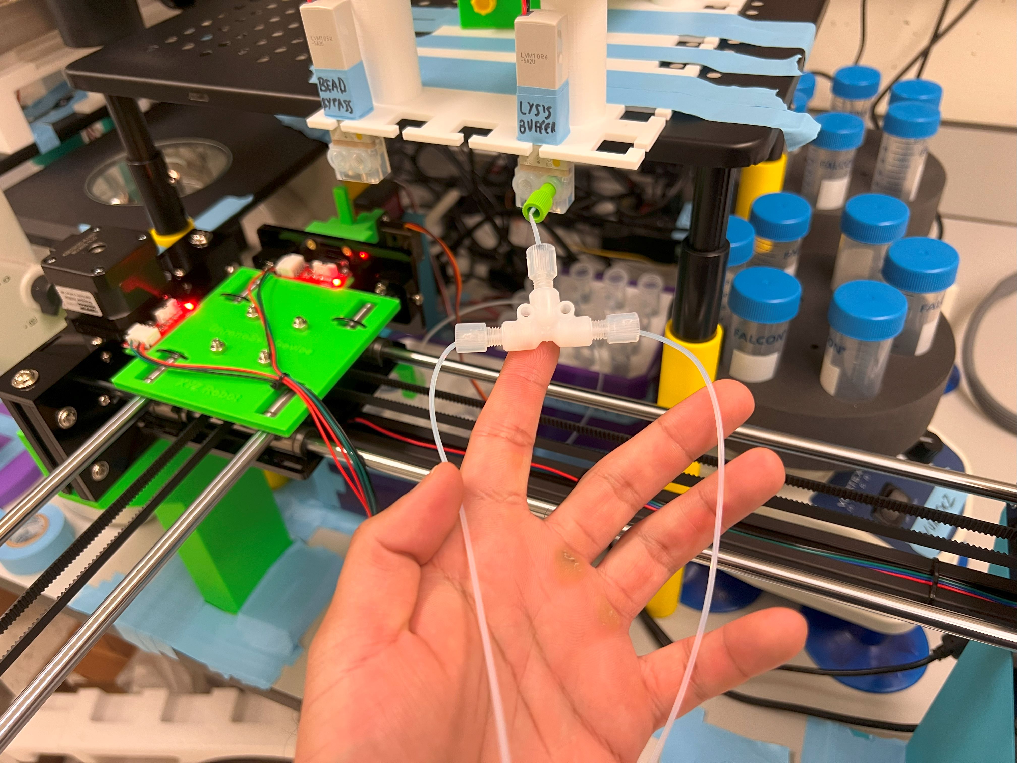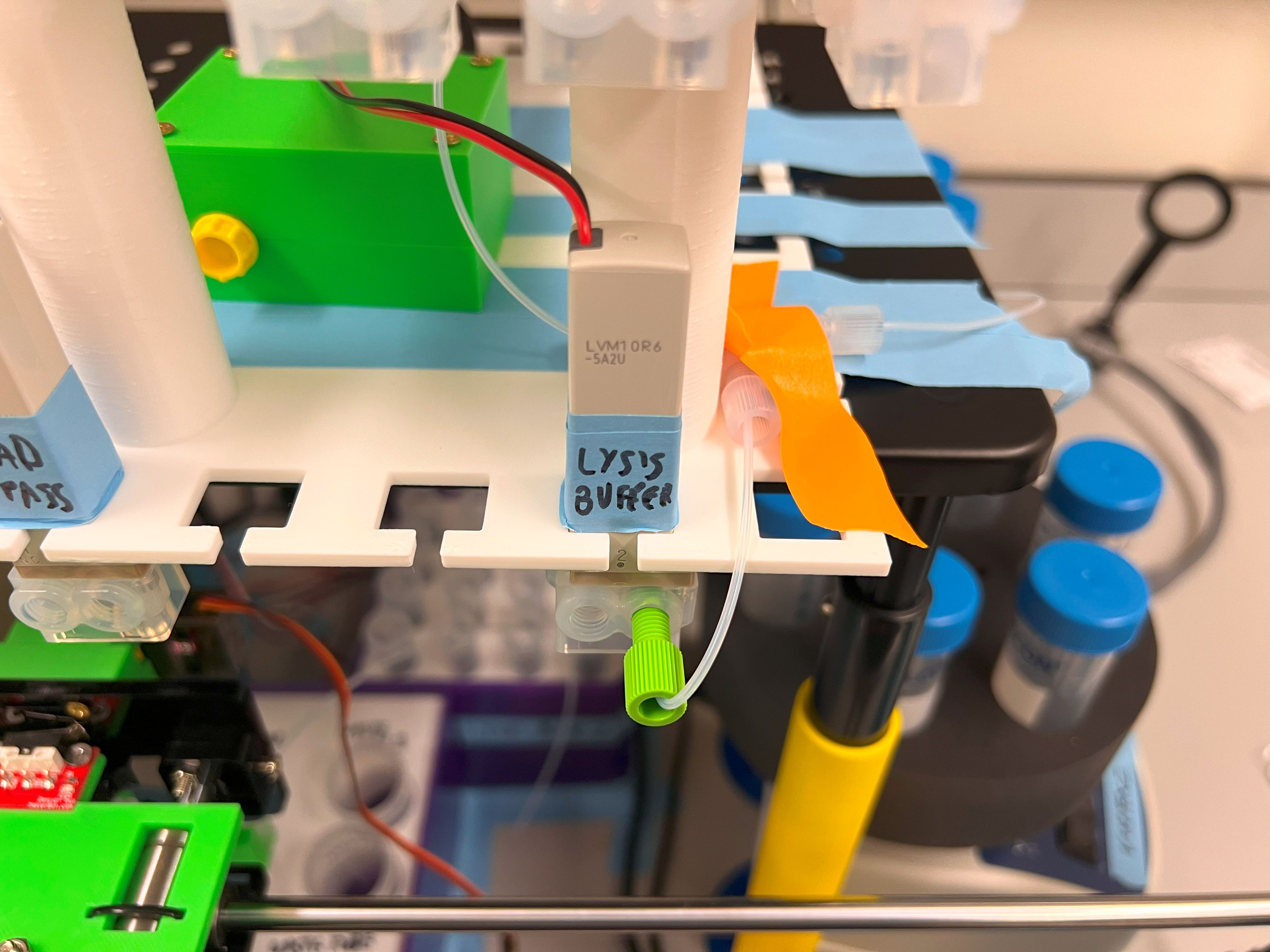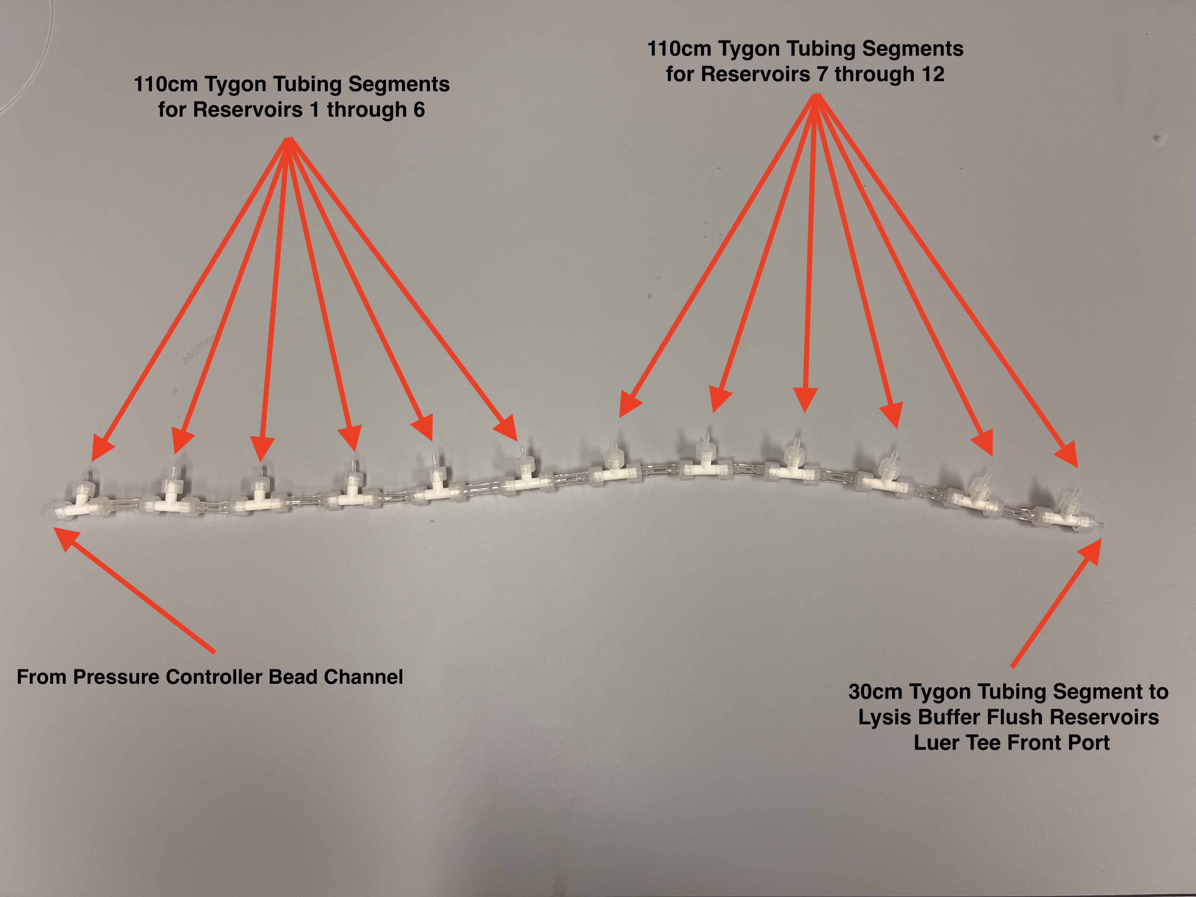 Lysis Buffer Flush Reservoir Tee Front Port | To NC Port of Lysis Buffer Flush Valve |