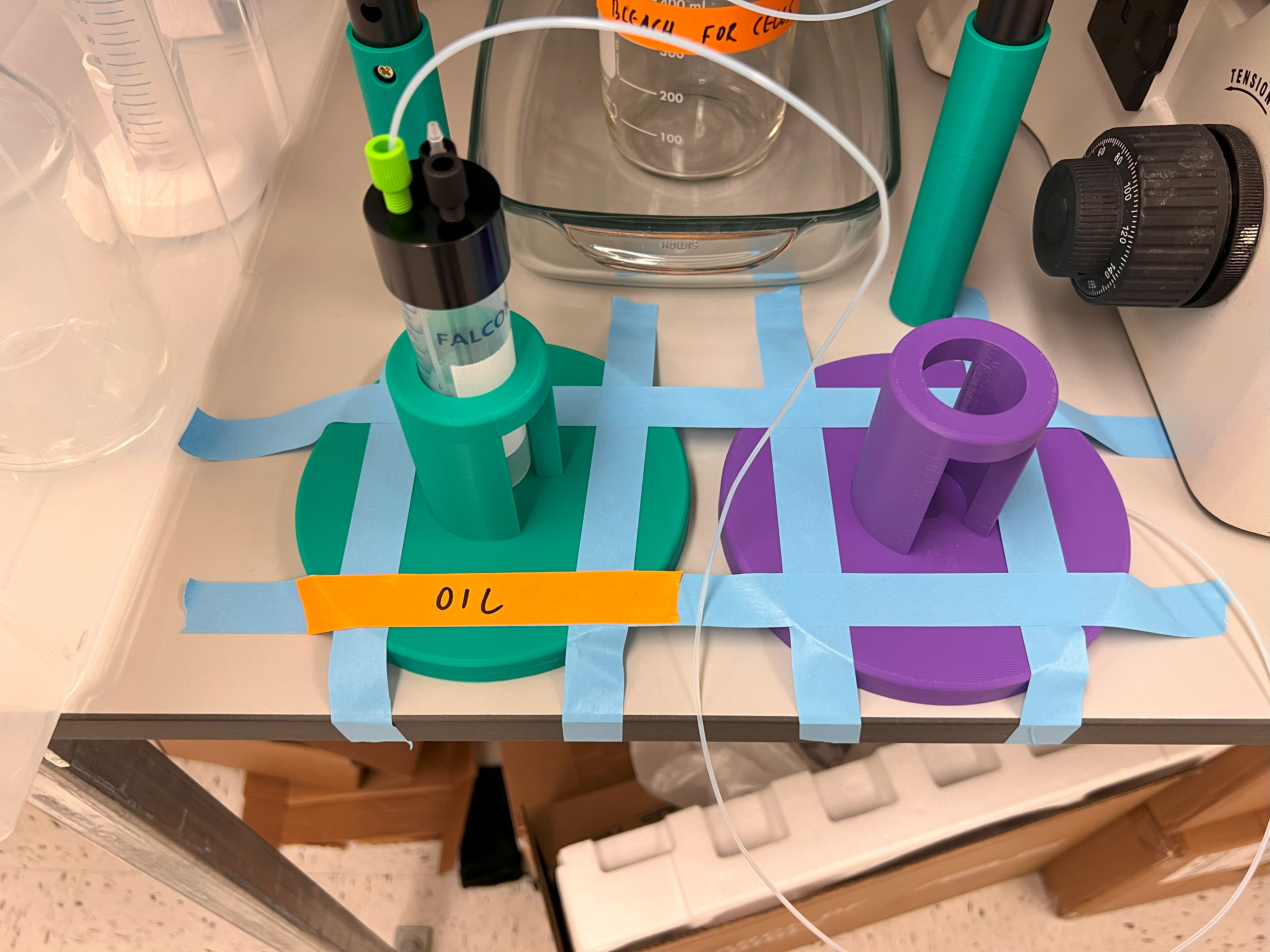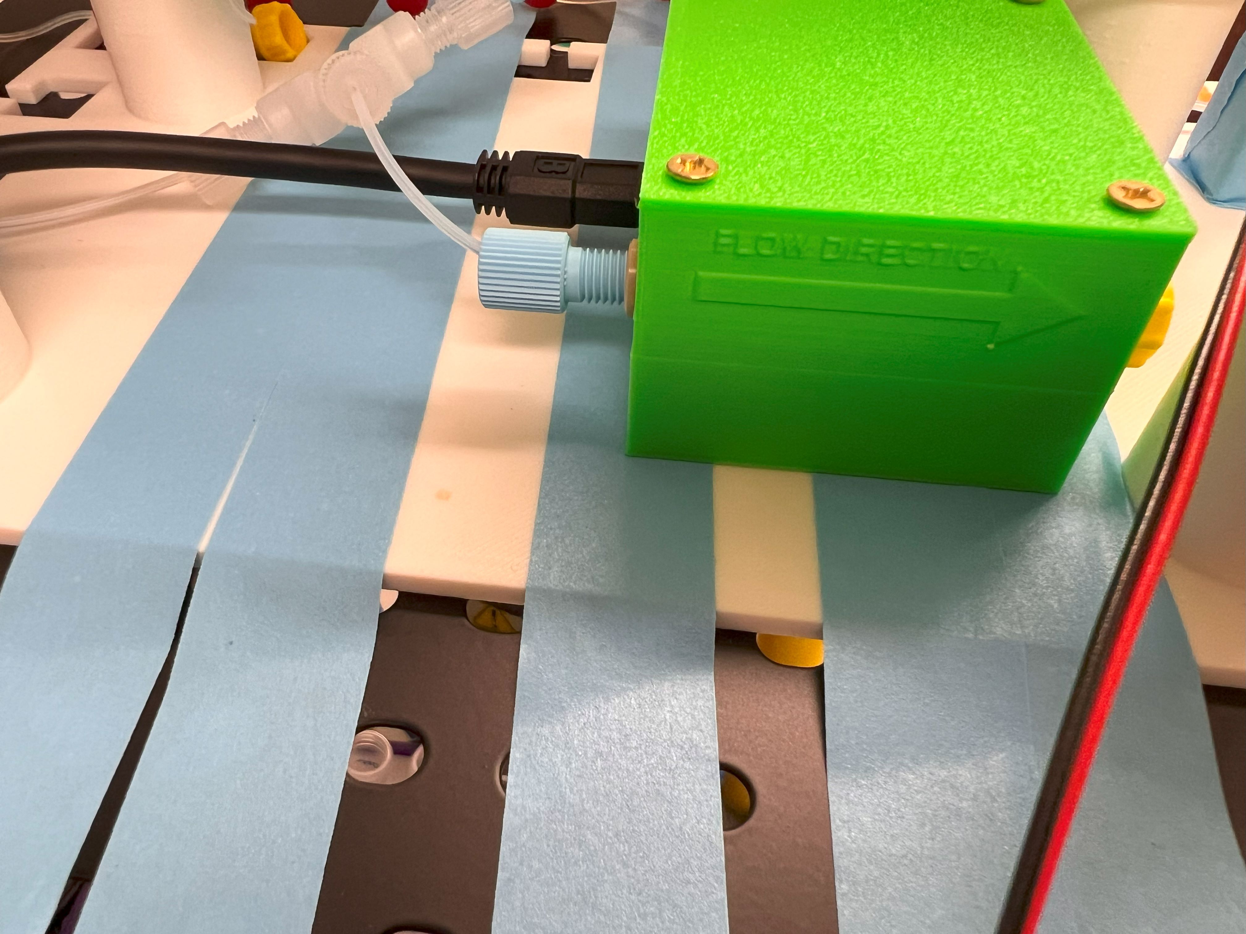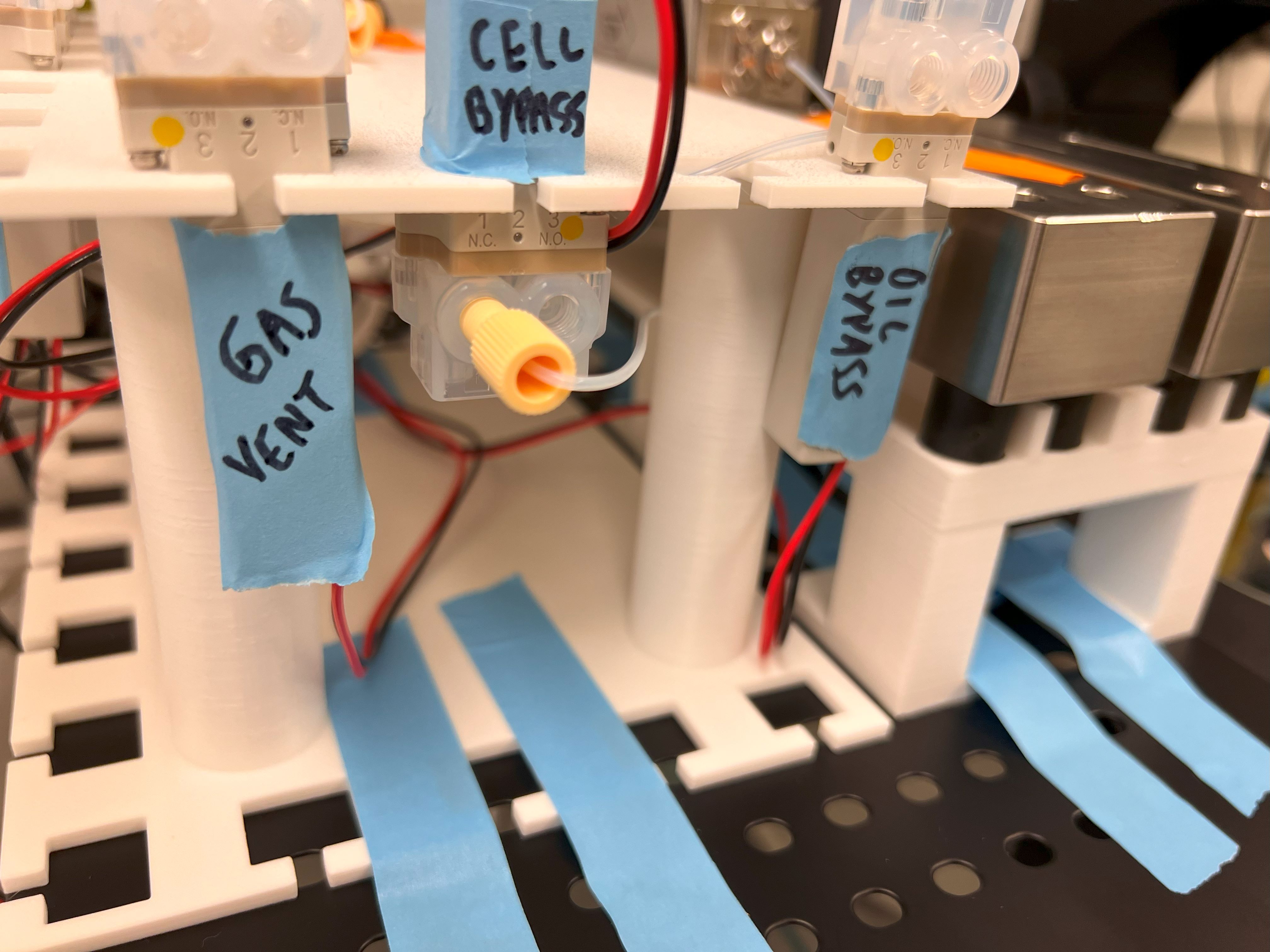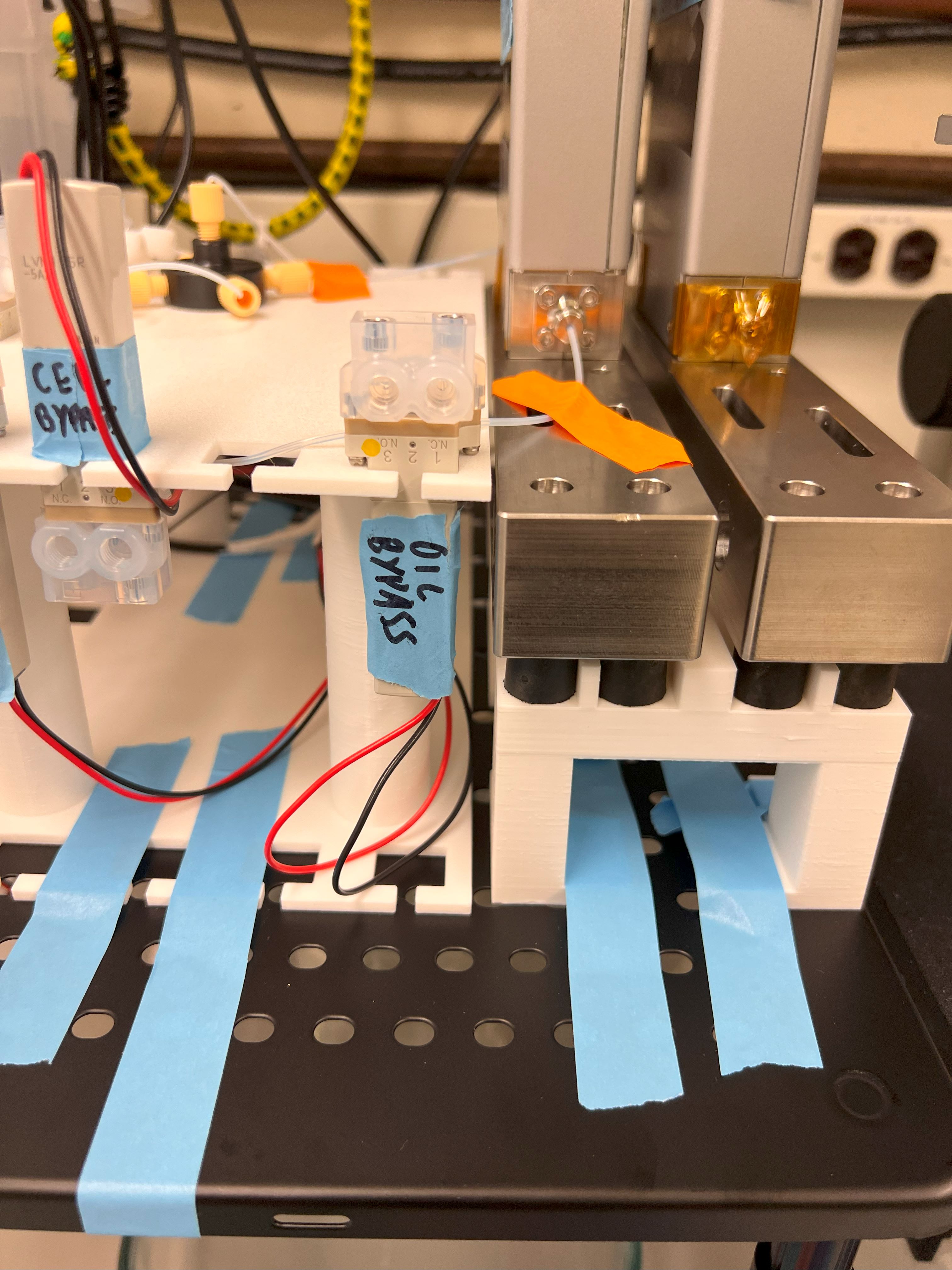 Place the other end of the PTFE Tubing attached to the reservoir on the Valve Holder near the Oil Flow Sensor Inlet.